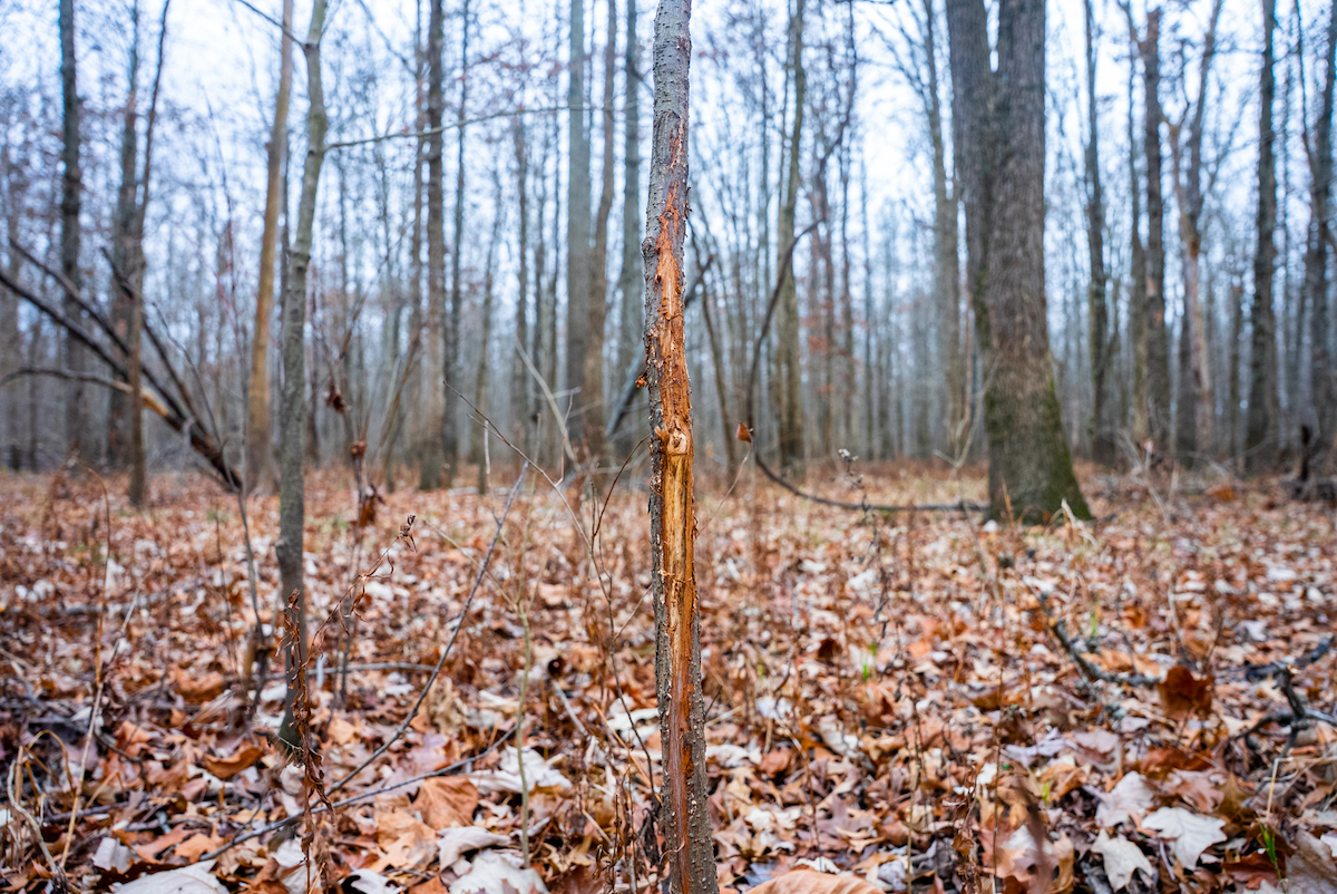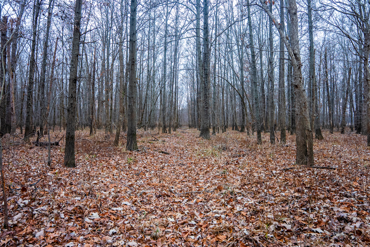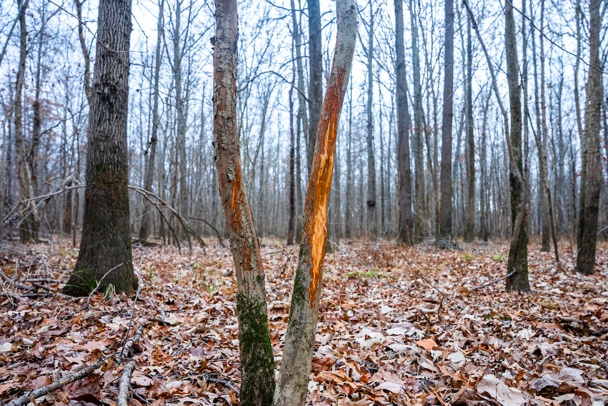 The property is entirely wooded, creating continuous cover and travel corridors for wildlife. Multiple rubs and scrapes were found throughout the tract showcasing the consistent deer movement. The surrounding landscape and timbered habitat contribute to the property’s use by mature bucks, particularly during seasonal rut activity. The layout of the timber allows for foodplot opportunities with some clearing and stand locations that can be developed by future ownership.