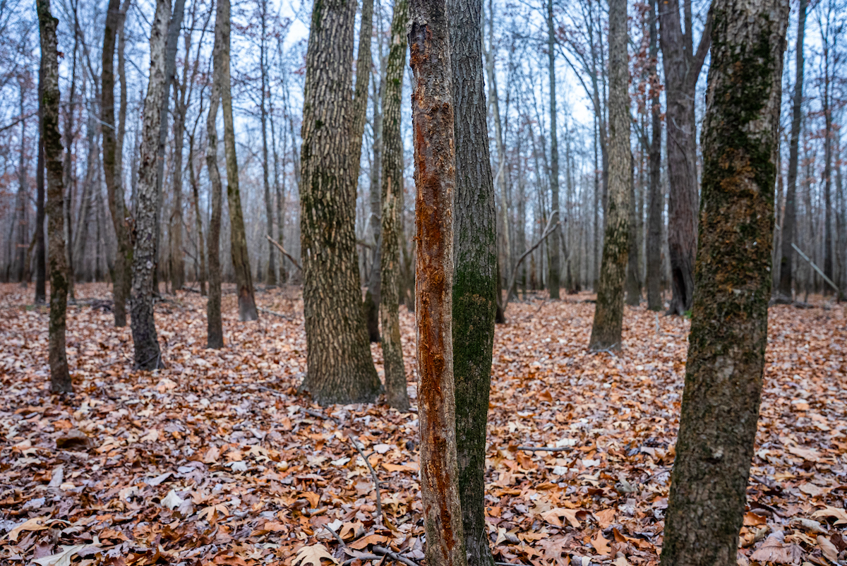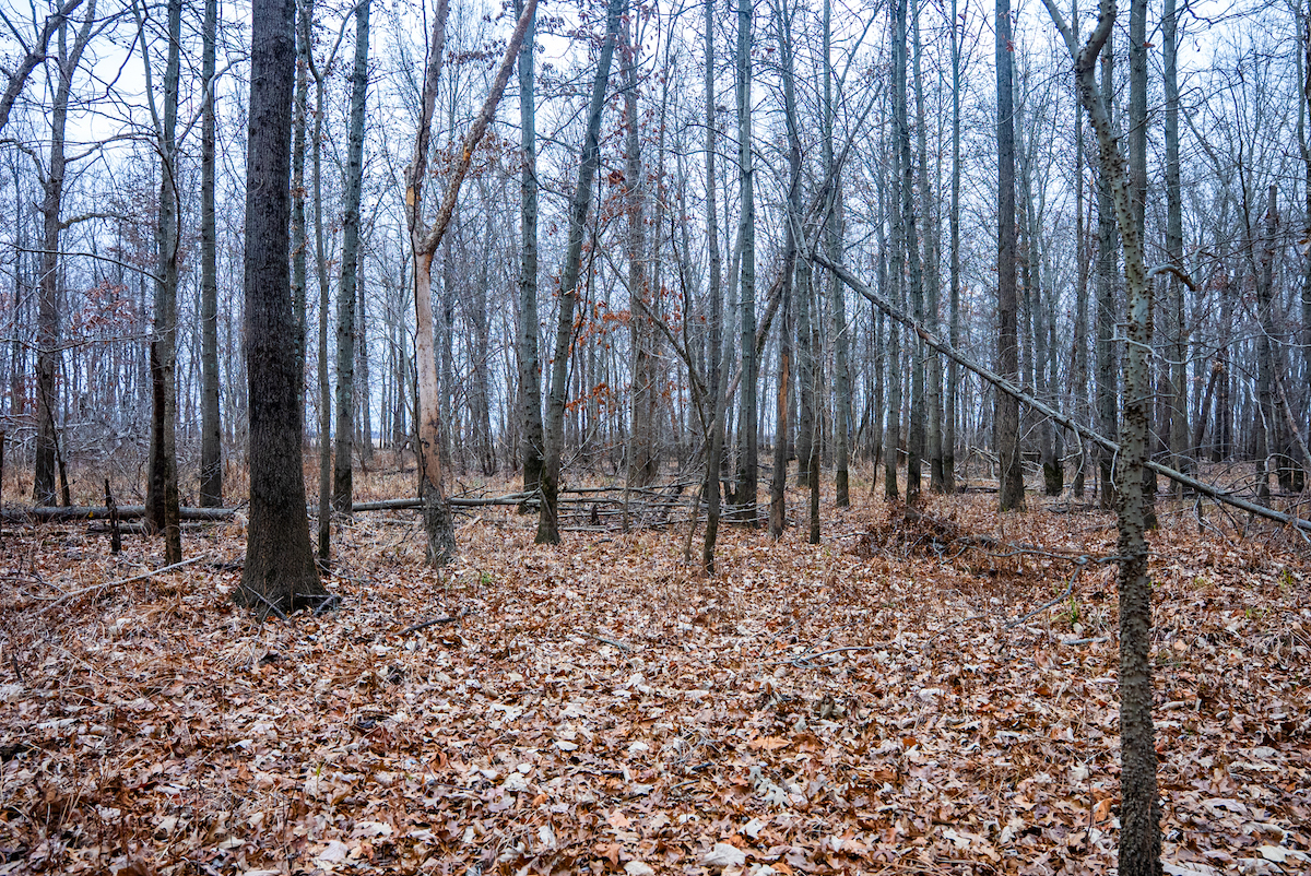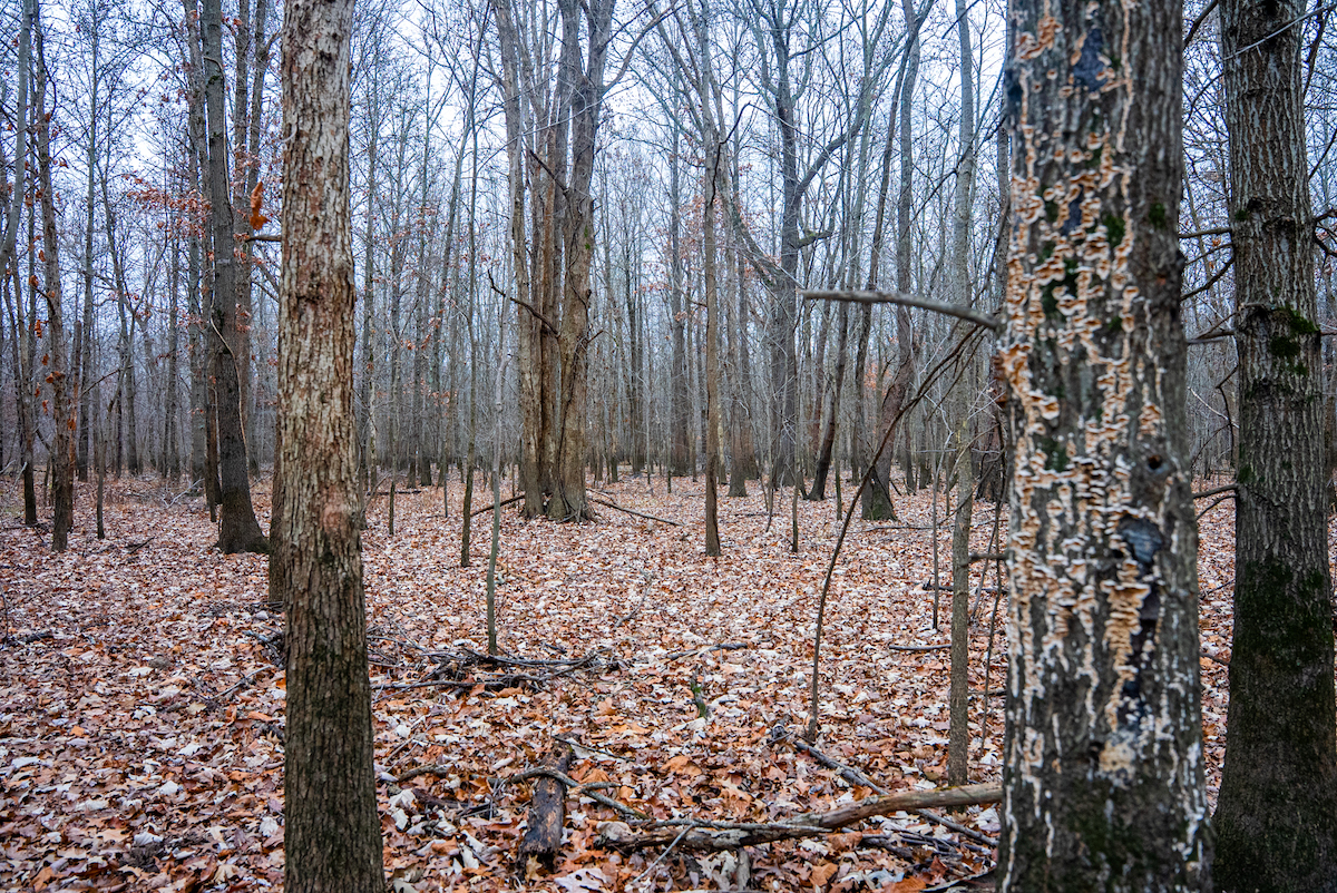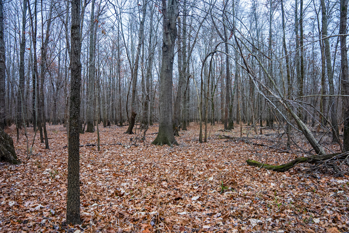 The property is entirely wooded, creating continuous cover and travel corridors for wildlife. Multiple rubs and scrapes were found throughout the tract showcasing the consistent deer movement. The surrounding landscape and timbered habitat contribute to the property’s use by mature bucks, particularly during seasonal rut activity. The layout of the timber allows for foodplot opportunities with some clearing and stand locations that can be developed by future ownership.