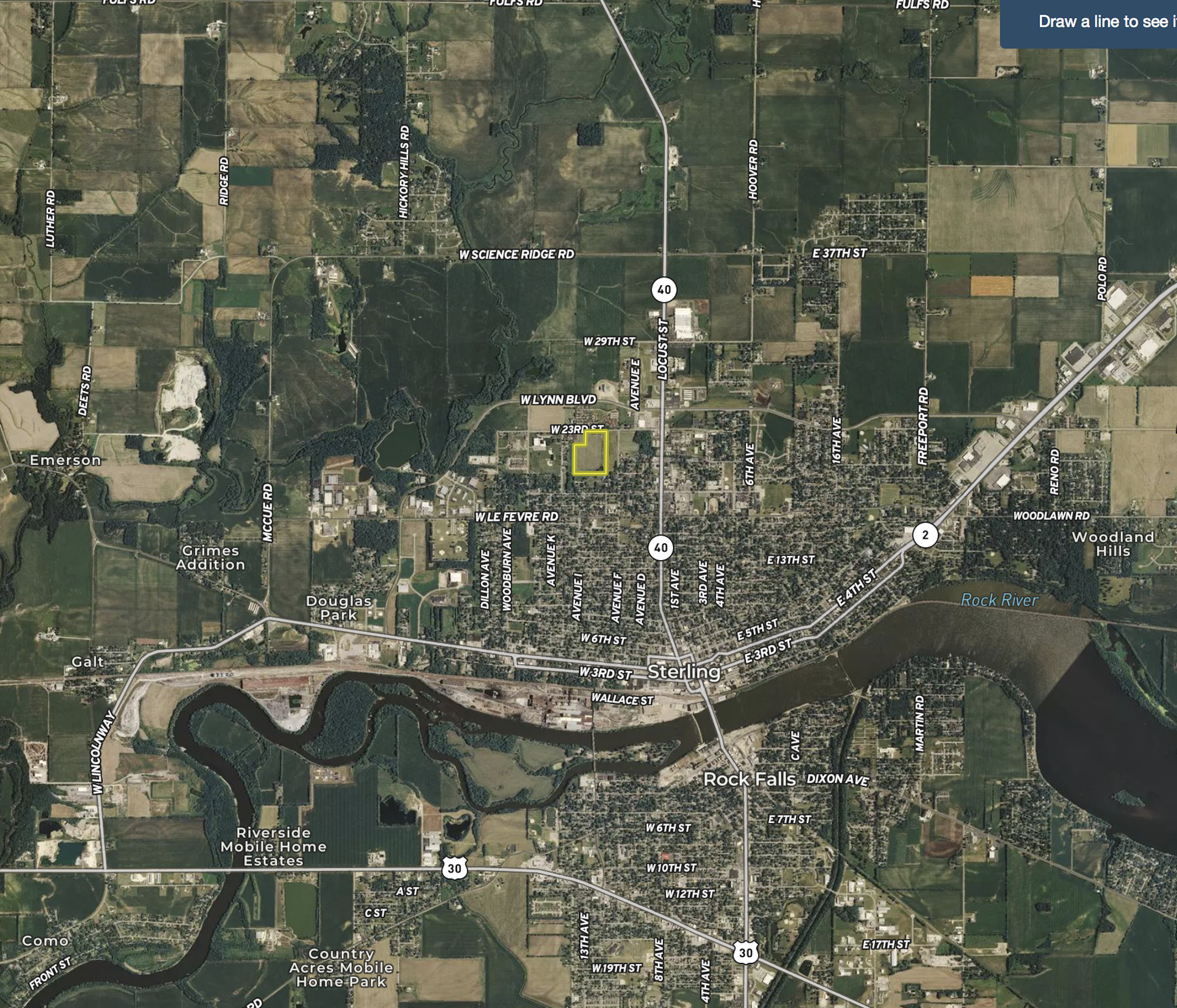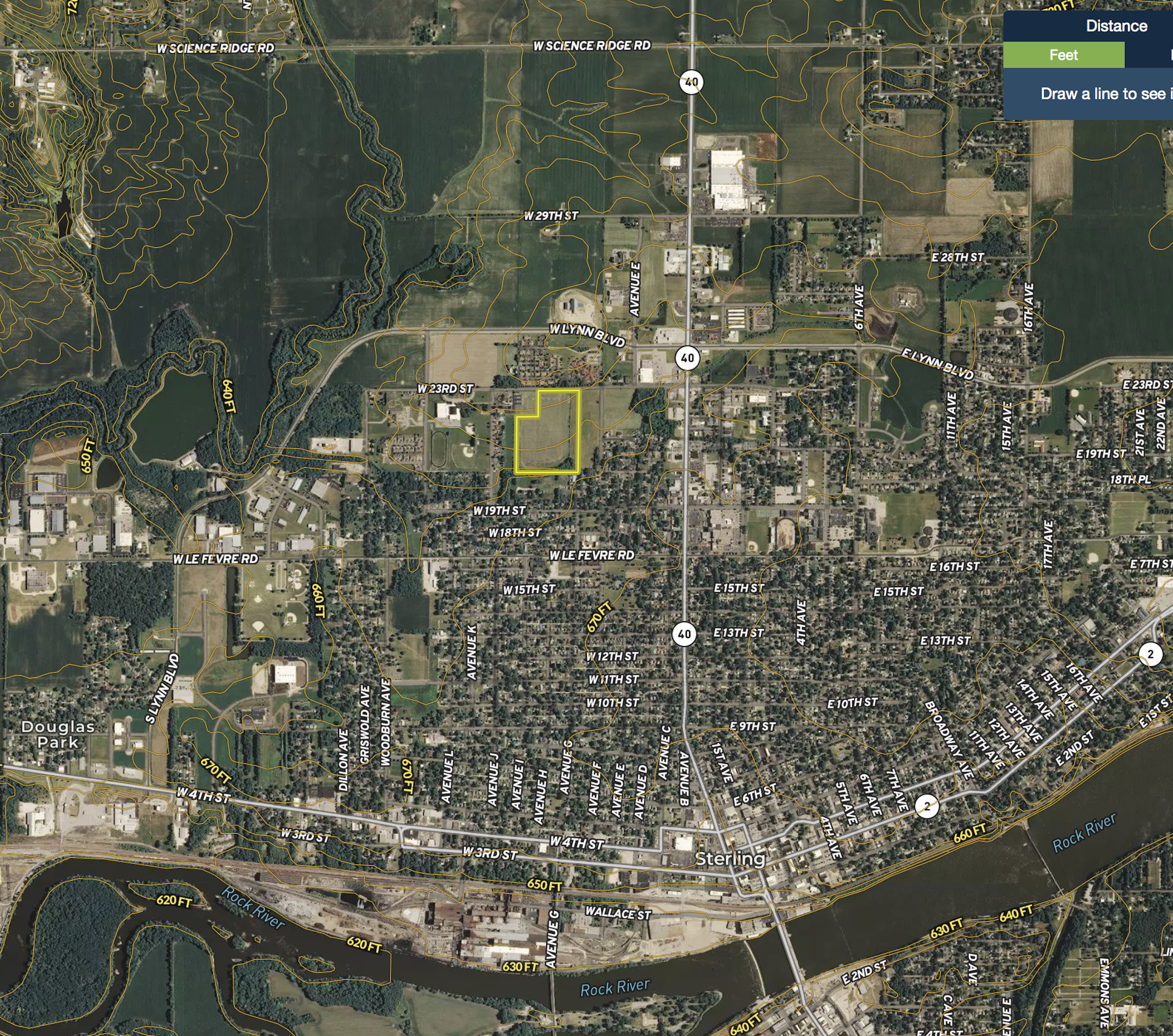 Highly productive farm ground conveniently located within Sterling city limits with an average PI of 137.87 and currently rented for $325/acre. Less than half a mile to IL-40 with a high number of commercial developments, nursing homes, hospitals, schools and parks nearby. City water and sewer available. Property is currently zoned residential with the ability to continue to be farmed per the city of Sterling. Would be able to be rezoned for residential or commercial use by going through the planning commission process. The population of Sterling was 15,370 at the 2010 census. Sterling lies along the north bank of the Rock River opposite its twin city, Rock Falls. The terrain is mostly flat. The land immediately outside of town is almost entirely farmland. The prairie soil is part of one of the world's most fertile growing areas. According to the 2010 census, Sterling has a total area of 5.943 square miles.