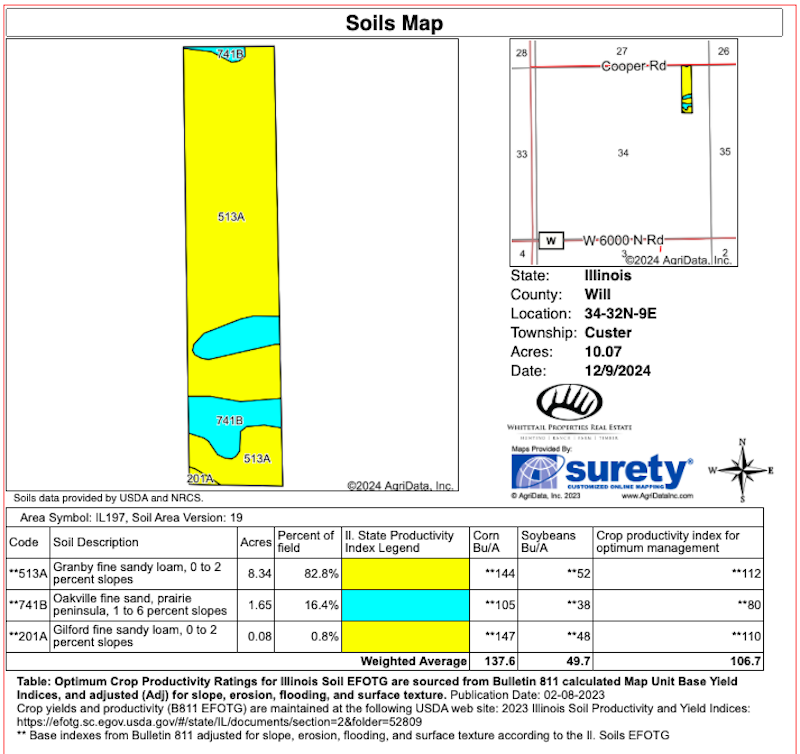If you’ve been looking for a clean slate of smaller acreage to build on in southern Will County, read on! Located on a peaceful country road within the Reed-Custer School District, lies this great opportunity to experience life with room to breathe. Access into this parcel is conveniently made from Cooper Road. This tillable tract has a very desirable rectangular shape, offering many build sites. It's topography is primarily level with a slight rise towards the back portion of the property. The tract is zoned A-1 and its current use is agricultural. Soils consist mostly of Granby fine sandy loam and Oakville fine sand with an AVG PI of 103.7. Crops have rotated between corn and soybeans. Enjoy the benefits of country living while close to all the amenities available in the surrounding communities of Braidwood, Essex and Wilmington. Wildlife abounds in this area which is well known for its tremendous waterfowl populations given the year-round open water located at the Braidwood cooling lake and Mazonia-Braidwood State Fish & Wildlife Area. This property offers a unique combination of tillable farmland, location, access, hunting opportunities and development potential so don’t miss your opportunity!! Contact Land Specialist, Mark Leonard for more information or to schedule your private showing.