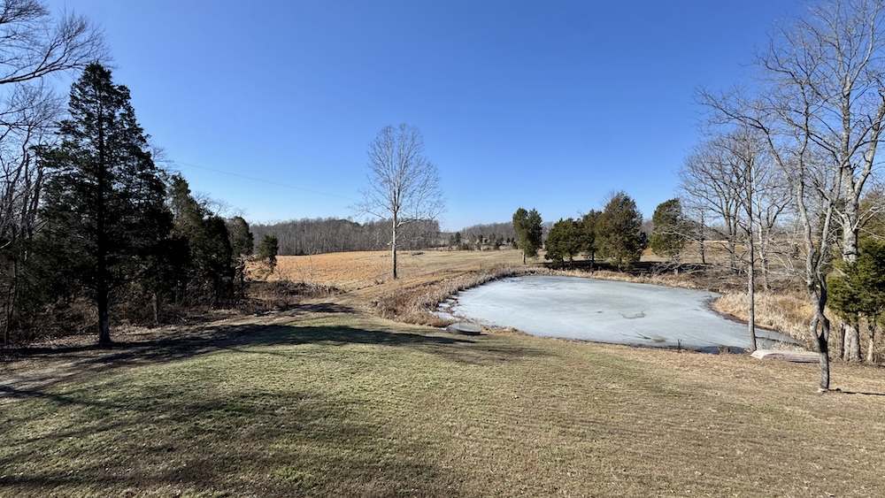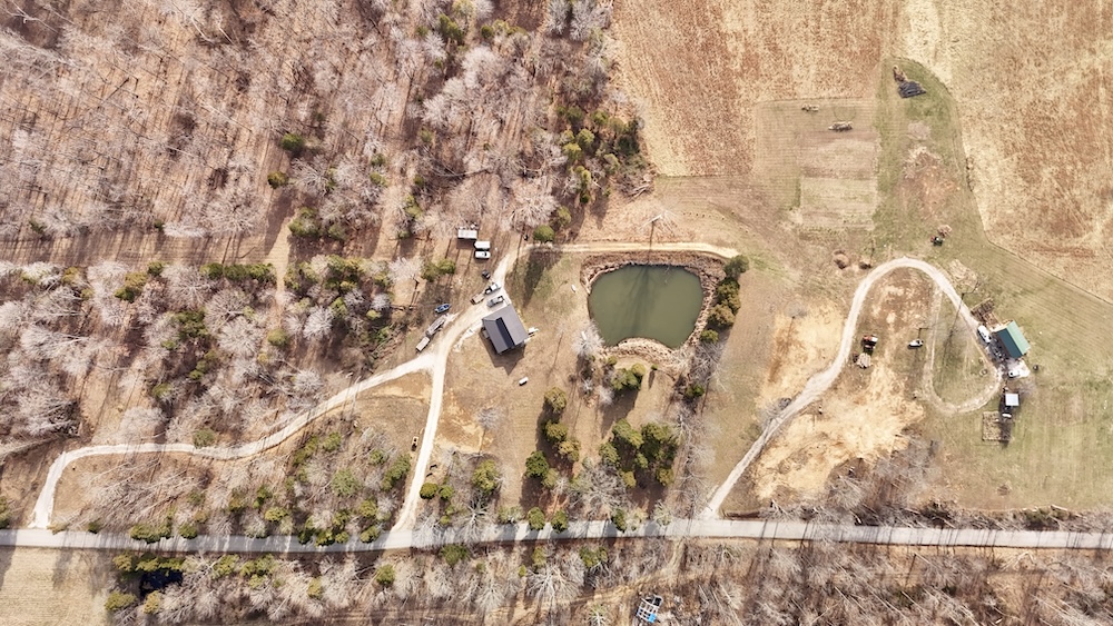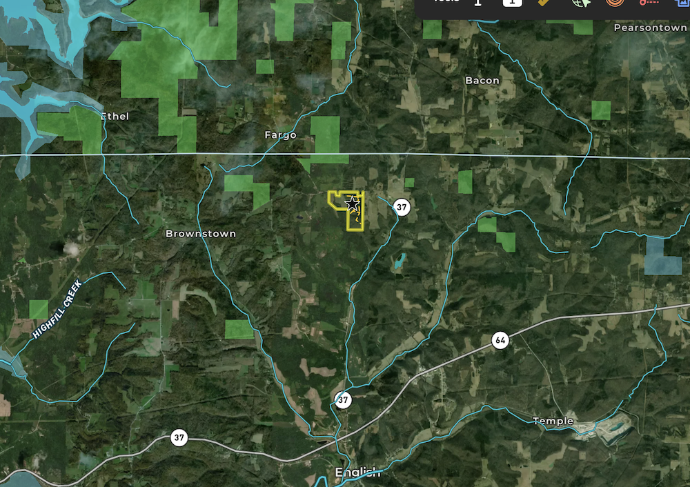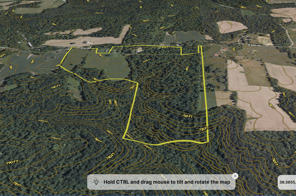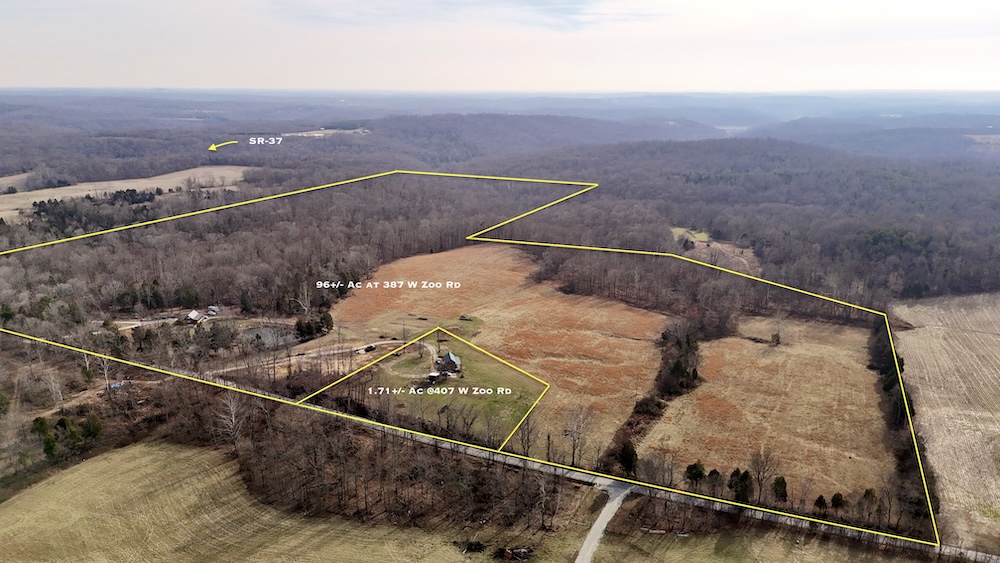 Located north of English between Browstown and Fargo near the Crawford and Orange County line, this 96± acre property offers a combination of residential improvements, open ground, mature timber, and diverse terrain. The property lies about 5 miles north of English, 8 miles west of Marengo, 14 miles south of Paoli, and approximately 30 miles east of Jasper. The area provides access to Patoka Lake, Marengo Cave, and other public recreational destinations. The primary improvement is a recently constructed 2000-square-foot Amish-built cabin, positioned on a poured wall walkout basement. The home is designed for efficient use of space and practical living. The main level includes an open living area, a well-appointed kitchen with professional-grade appliances, and a primary bedroom with an en suite full bath. A loft area provides additional sleeping or flex space for guests, office use, or storage. The walkout basement offers extra space for storage, mechanical systems, or future finishing, at the buyer's discretion. The outdoor living space includes a partially screened back porch overlooking a small pond. The pond and surrounding yard create usable outdoor space for gatherings, wildlife viewing, or general recreation. The homesite has been planned to allow convenient access and future expansion. Electric, septic, and water are in place and have been positioned to enable extension to a side lot that is prepared for a potential future pole barn or additional outbuilding. Approximately 20± acres of the property consist of open grass hay ground. These areas provide space for hay production, small-scale agricultural use, or potential future building sites. The open ground also contributes to wildlife habitat diversity and edge cover. The balance of the acreage, roughly 75± acres, comprises mature hardwood timber across rolling, rugged terrain. The wooded portion includes creek drainages with rock bottom springs and seasonal waterfall features that ultimately feed into Bird Hollow Creek. The mix of timber, elevation changes, water sources, and edge habitat supports a range of wildlife and offers opportunities for hunting and outdoor recreation. The property offers a combination of residential use, recreational land, and agricultural potential in a rural setting near the Crawford-Orange County line. Access routes and utilities are in place to support continued use of the existing home and potential future improvements. Agent Note: An additional 1,000-square-foot cabin located on approximately 1.71± acres at 400 Zoo Road is available to the buyer at an asking price of $165,000.