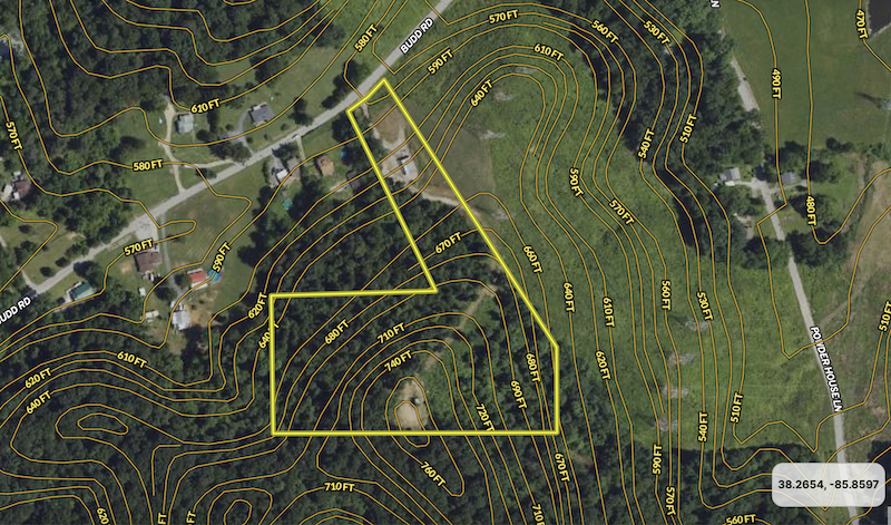 Location is everything regarding million-dollar views, and this property has it! This tract sits just minutes from downtown New Albany and a quick jump over the river to downtown Louisville. The property has water and power running along its gated road frontage allowing for ease of connection if one so desires. Passing through the gates as you head up, you first come to a well-constructed pole barn. The building is about 3 years old with open bays, and roughly 840 sq ft. Perfect for equipment storage or possibly whatever your dreams encompass. This space offers plenty of parking and room for larger vehicles to turn around. Moving up the hill is a well-cared drive with an old gravel base covered with grass kept up by mowing the lawn. The climb is steep, but once at the top, it is worth it. Here you will find one of the best views around, where you can proclaim yourself as king of the mountain. This area does have a viewing tower and deck, but in its current state, it needs some rotten board replacement. Imagine the sunset with a fall breeze and owning one of the best views in the county or maybe a summer party cookout with friends watching the Thunder Over Louisville 4th of July fireworks show. The property is visible when passing across the Sherman Minton Bridge from the East as well. Best of all no traffic or other people to contend with, your private oasis. No doubt, with the forest backdrop and seclusion at the back line, it would be a great place to hang a deer stand for any passing bucks during the season. A true outdoor property with lots of character to build your dreams and create memories.