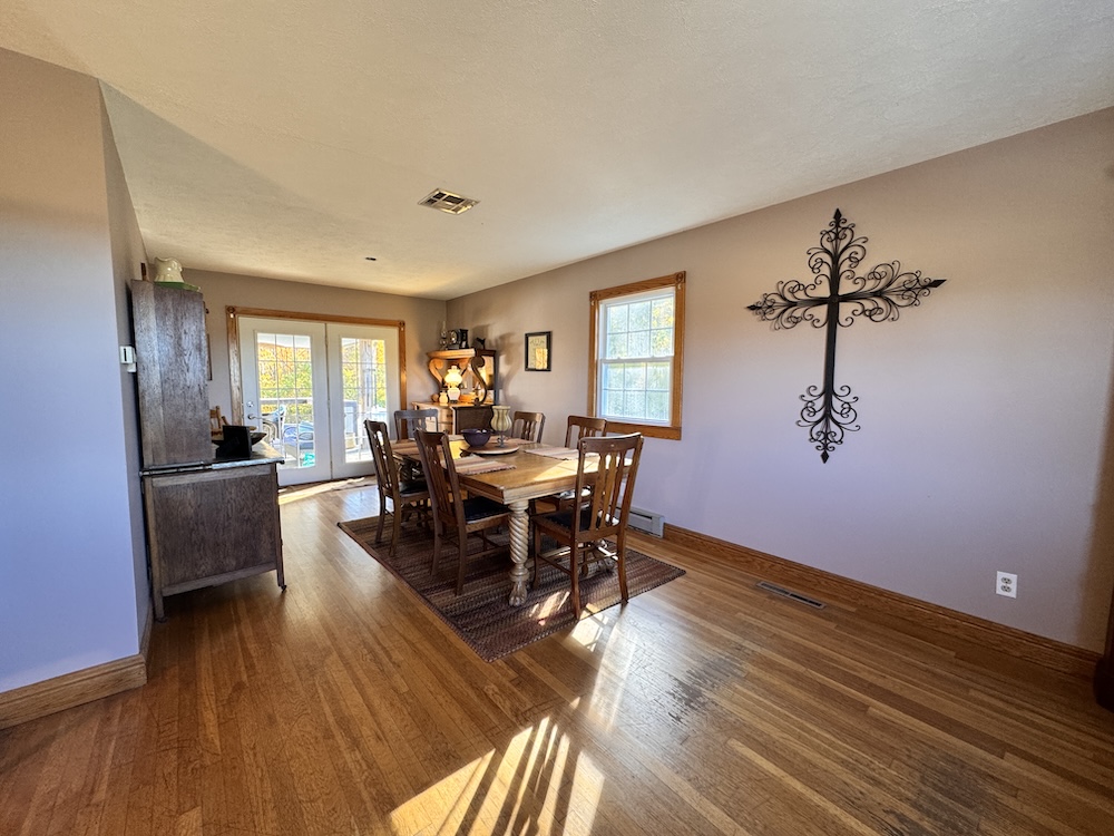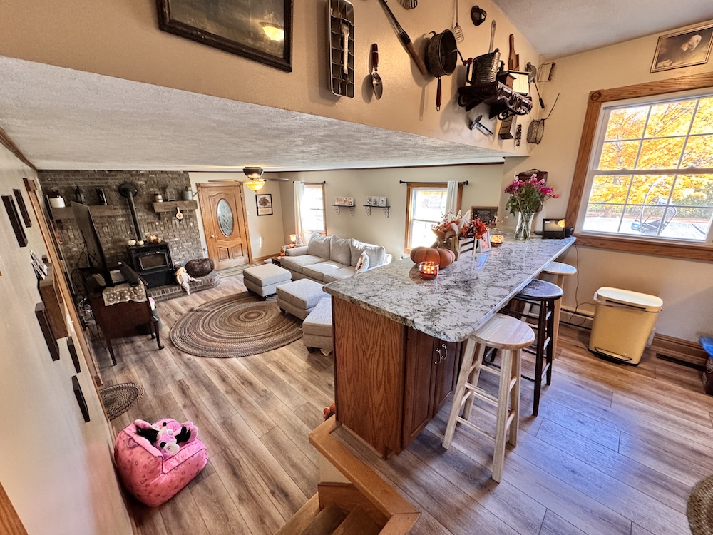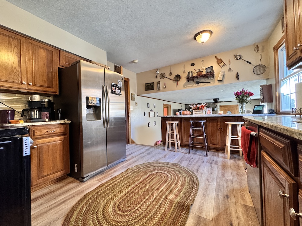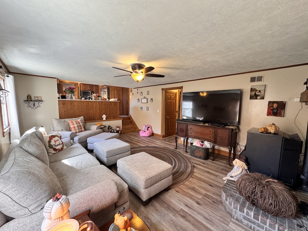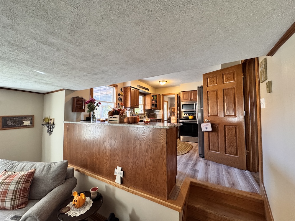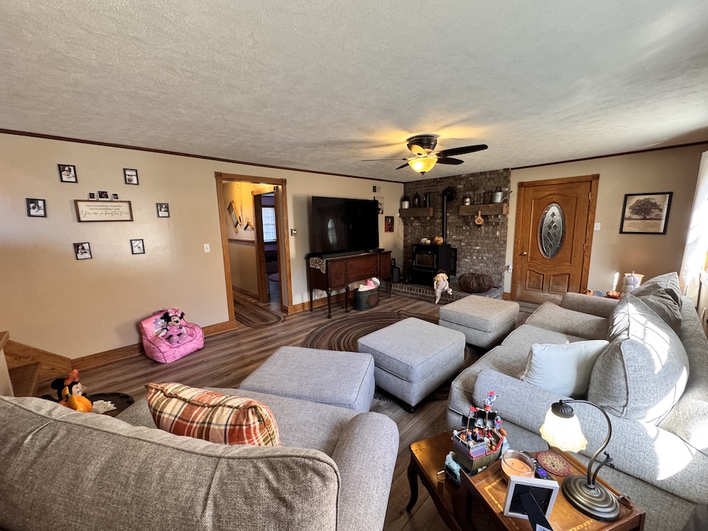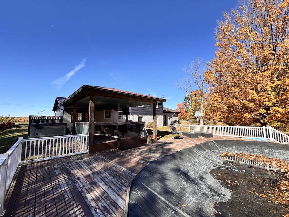 This beautifully updated tri-level home is perfectly nestled in a quiet, rural area near Veedersburg. As you approach the home & property, you will be greeted by impressive curb appeal that sets the stage for what awaits inside. A beautiful backdrop of wooded acreage sits behind the home, giving it a sense of seclusion and privacy. Upon entering through the front door, off to your right, you will find a sitting area that flows into the large dining room. The spacious dining room is perfect for hosting gatherings and celebrations! The dining room sits next to a cozy kitchen with a breakfast bar that overlooks the large living room. The kitchen features wood-tone cabinets, granite countertops, and a backsplash. Stainless steel appliances are included, adding to the modern appeal. Head down the steps to the large living room. The lower level is versatile, boasting a large living room complete with a pellet stove for heat. The delightful breakfast bar area, sitting above the living room in the kitchen, makes this space perfect for entertaining. This level also features an additional sizable bedroom and a full bathroom, with the laundry room sitting right next to it for added convenience. Next, you will go up the stairs to the upper level. You will find three additional bedrooms and a full bathroom on the upper level. Off the dining room, the 3-season porch invites you to relax and enjoy the view of the spacious backyard, offering both privacy and room for outdoor activities. The porch includes a hookup for a TV, a hot tub, which is included in the sale, a bar, and a large deck that leads you to the pool! In the backyard is a beautiful, red, old-fashioned barn with vaulted ceilings that includes 5 horse stalls! This home combines comfort, style, and convenience as it is within proximity to I-74. For more details or to schedule a private showing, contact Land Specialists Andrew Malott & Tyler Fritz today!