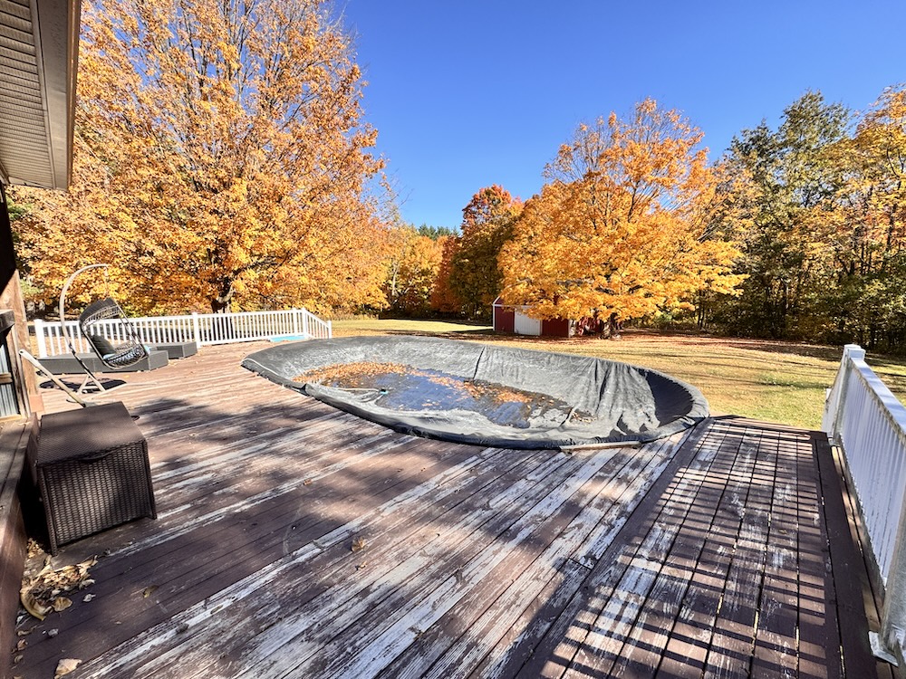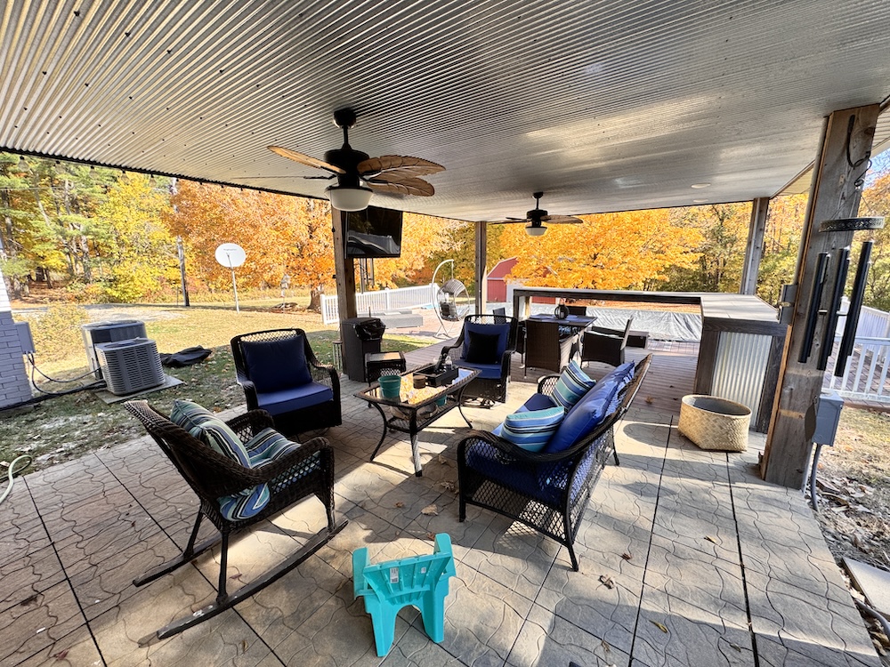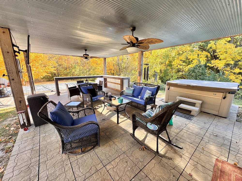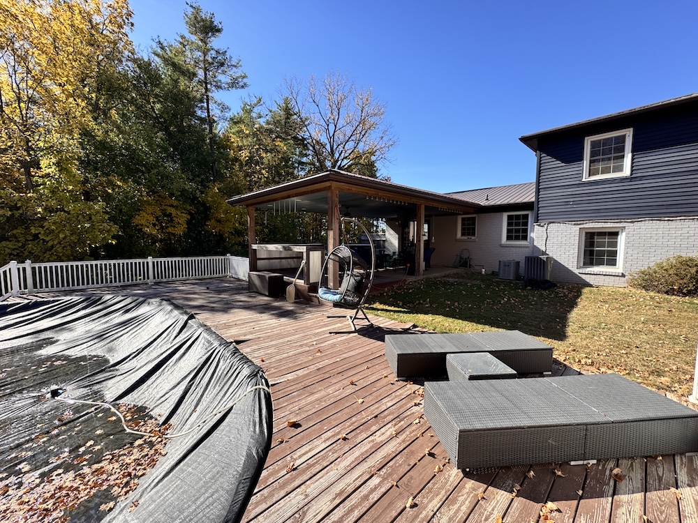- 3-season porch with TV hookup, hot tub, bar, & pool