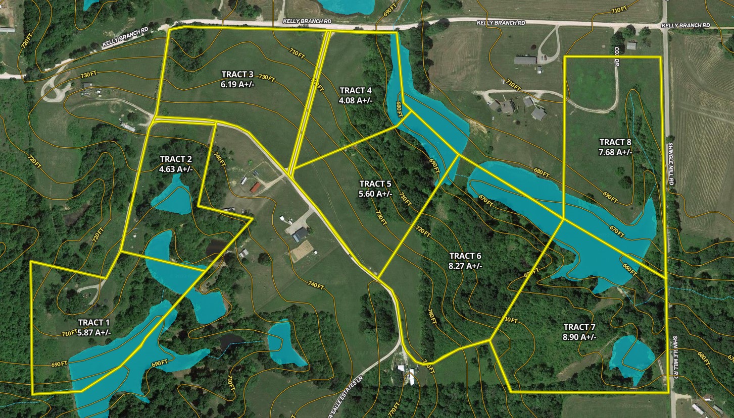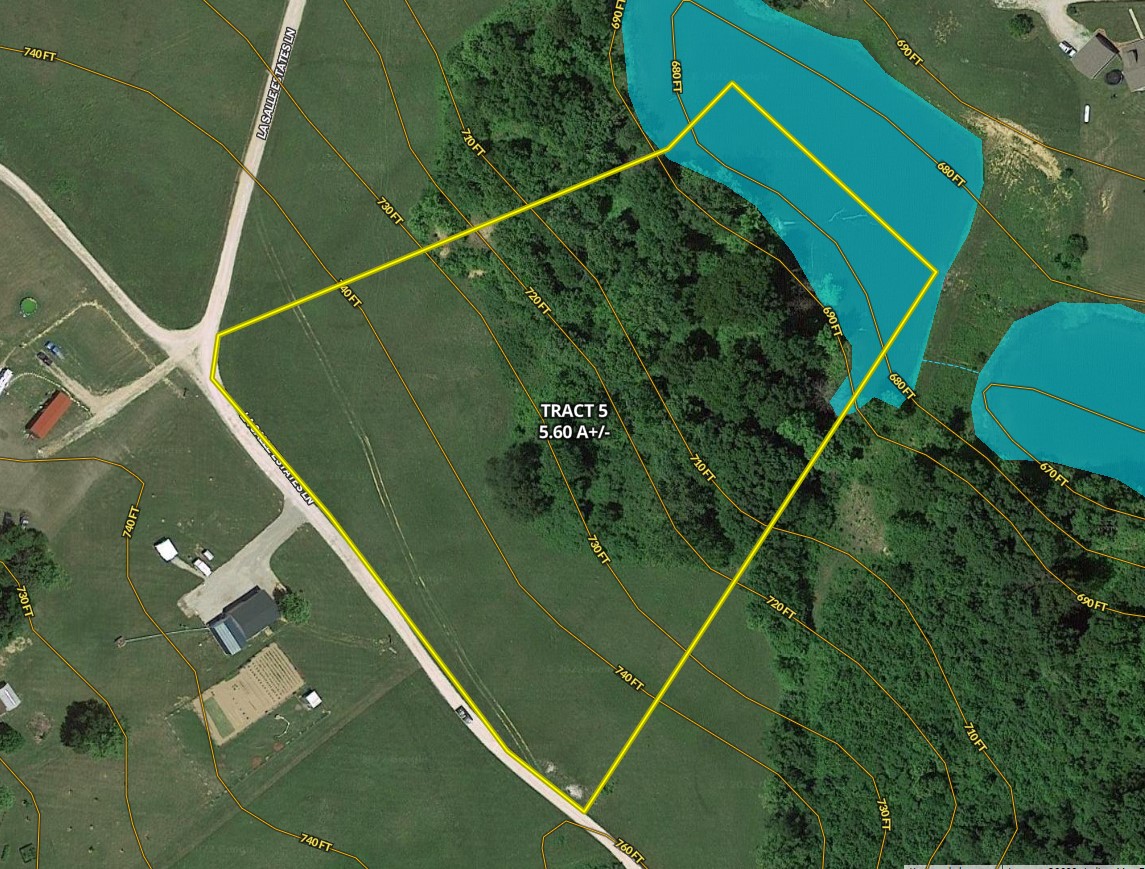 (Tract 5) Looking for a little acreage that would make a great country homesite or place to have a getaway cabin. This just may be what you’re looking for. There are 8 tracts being offered in total. Most tracts have a good mixture of woods, water, pasture and buildable sites. All tracts, with the exception of tract 3, have a pond/lake on it and offer good fishing opportunities. Many of the ponds/lake have shared access with other tracts that touch the water also. All tracts have good road frontage, city water and electric available. Tract 1 also has septic on it. Country acreage lots like these don’t last long; call to schedule your own showing before they are gone. The property is also being offered as one whole tract, 56.22 A+/-, for $449,900.