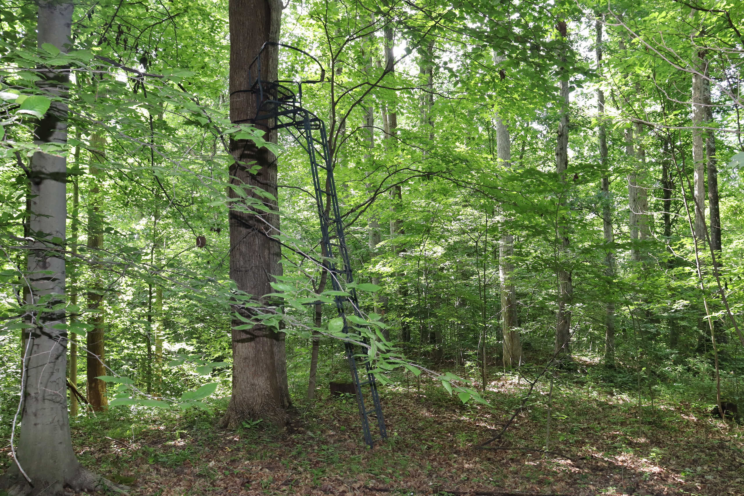 - 2 elevated tree stands overlooking food plots are included