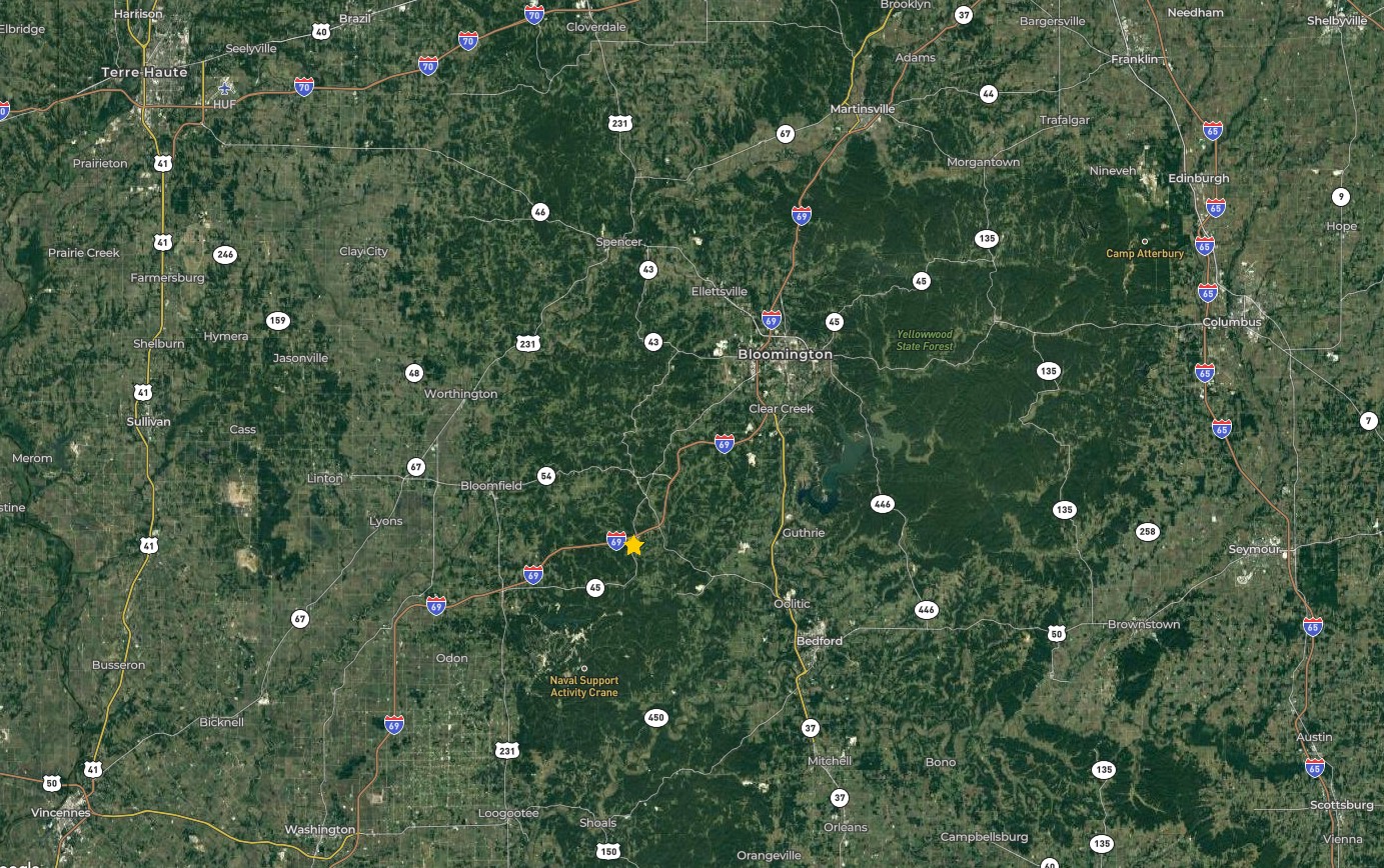 - Just minutes from I-69, less than 5 minutes from Crane Naval, approx. 20 minutes to Bloomington or Bedford, 1 hour and 5 minutes from Indianapolis