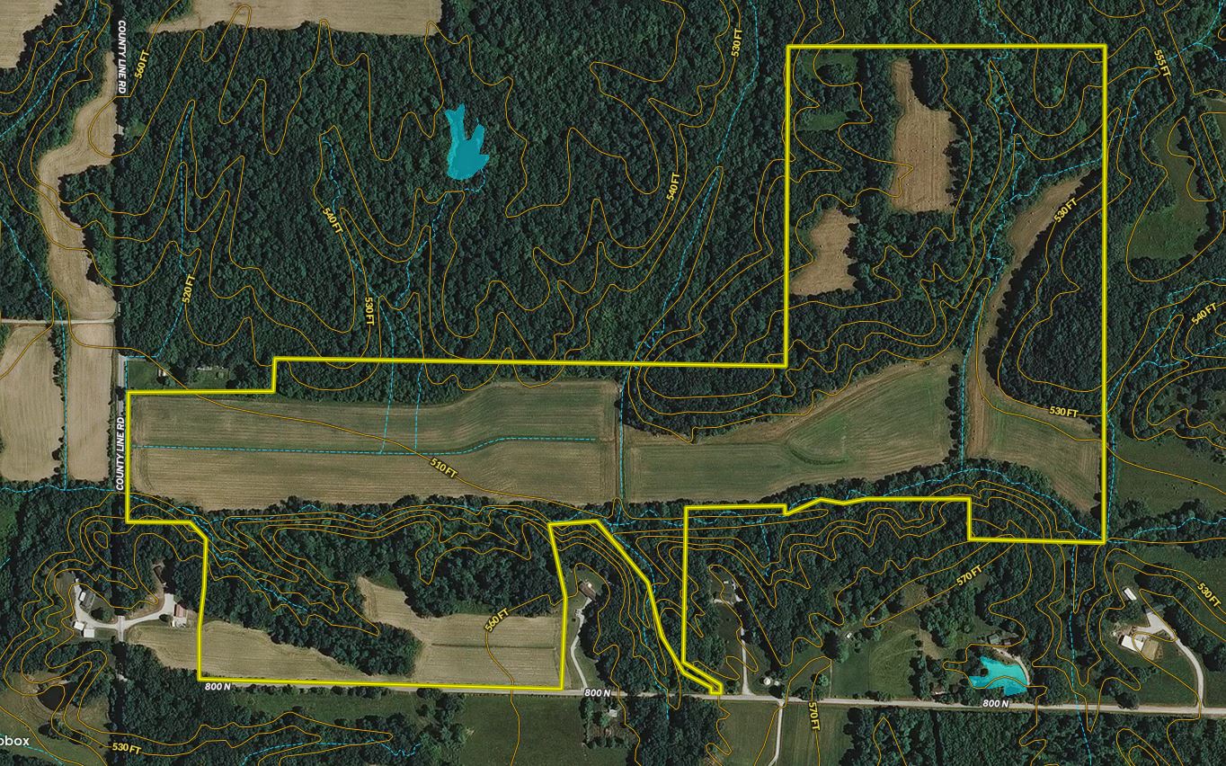 PRICE REDUCED Outstanding investment property offering a great mix of tillable to wooded acreage along with potential build sites. This property features quality tillable acreage with the majority of the row crop acreage; 39.54ac, holding an average NCCPI of 78.4 and is currently being farmed under a sharecrop agreement. The surrounding woods are made up of draws and ridges connecting the crop fields to nearby water sources and additional surrounding timber. Several smaller crop fields have been converted from row crops to hay production, creating ideal ambush locations for catching a cruising buck or a lonely tom. A camper on a raised platform overlooking an additional 1-acre food plot opening offers a great location for your opening day sit. To the north of this property lies several hundred acres of solid timber feeding into Shakamak state park approx ½ mile away. An established trail system provides easy access to the secluded hay fields and food plots. The southern side of this property offers ideal building sites along County Road 800N with water, electricity, and gas located at the property boundary. If you and your family have been looking for an investment property with great ROI, quality hunting, and potential build sites, be sure to check this one out.