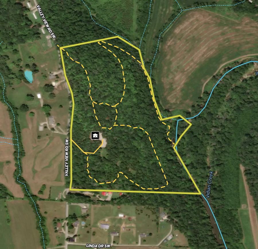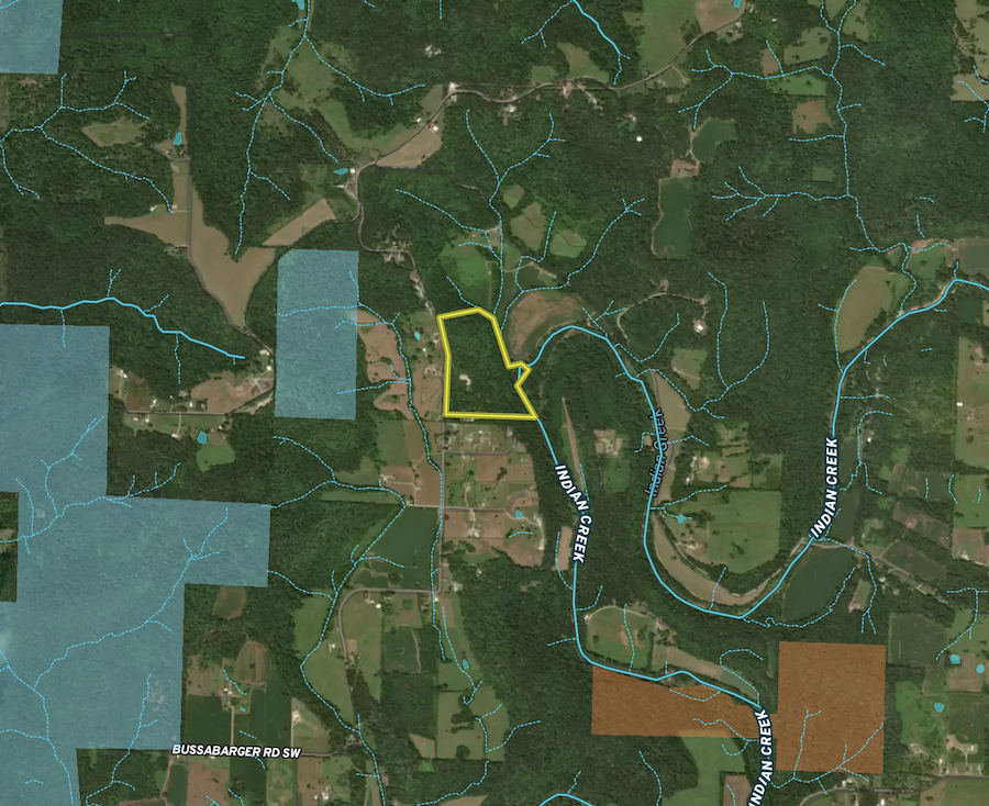 Beyond the barn's allure lies a landscape of rugged beauty, with miles of established trails meandering through mature hardwood forests and leading to a 1/2+/- acre landing/campsite nestled along the banks of Indian Creek. This picturesque setting offers direct launch access to the creek, renowned for its excellent kayaking and smallmouth bass fishing. Nature lovers will delight in abundant wildlife sightings. Outstanding opportunities for deer and turkey hunting exist on the property with additional opportunities and miles of trails thanks to the proximity of thousands of acres of open-access Harrison-Crawford & O'Bannon Woods State Forest nearby.