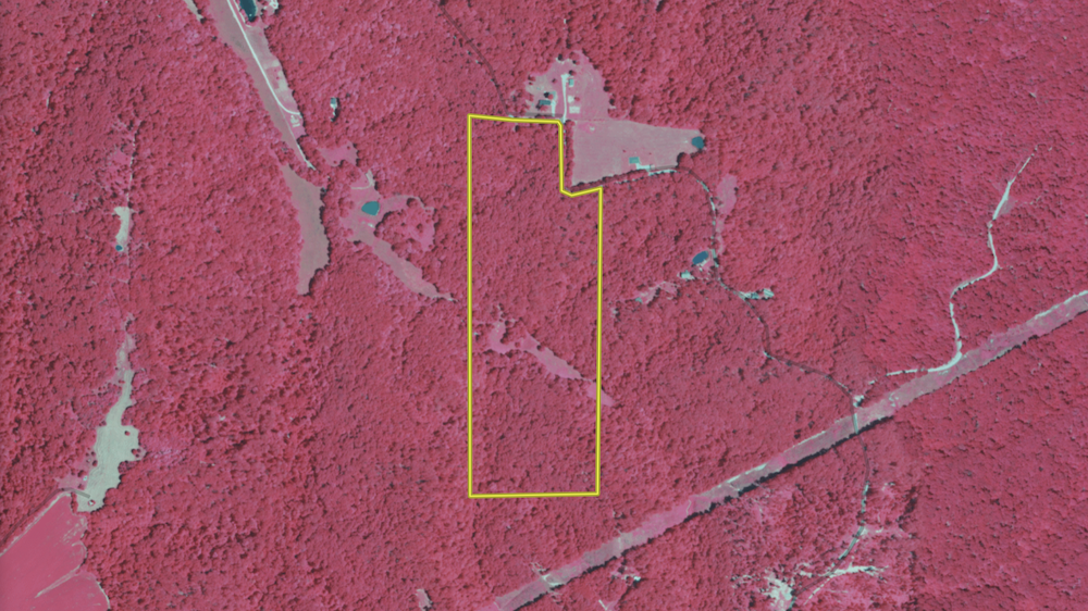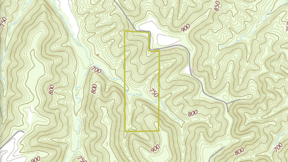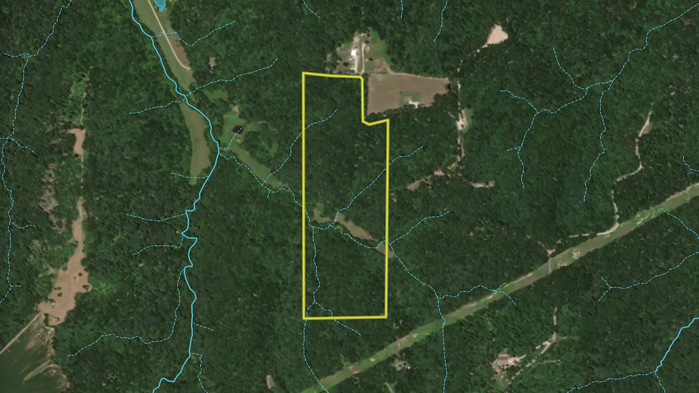 As the main trail descends, it leads into a small field positioned along a creek bottom. This opening serves as a natural wildlife travel corridor and foraging area. From there, the trail climbs back uphill through mature woods and reaches the property's rear boundary, adding elevation changes and terrain diversity. Combining bottomland and upland timber enhances habitat quality and provides various recreational options.