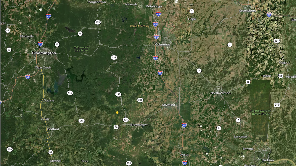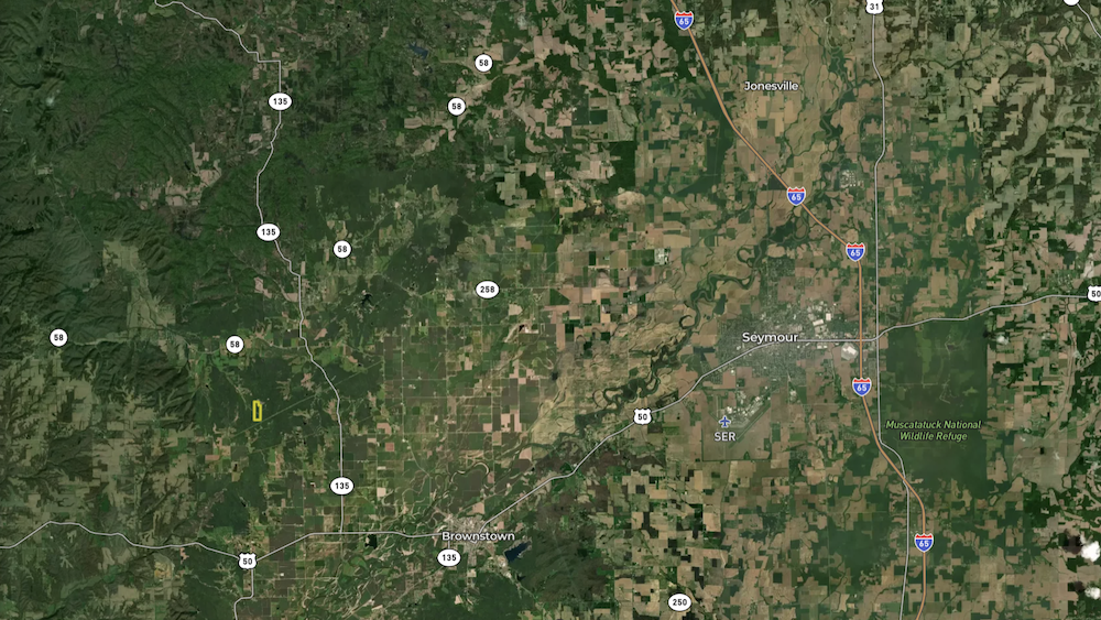 Utilities, including electricity and public water, are available along the road, offering potential for future building or cabin placement. The property is well located near the junction of Jackson, Bartholomew, and Brown Counties. Columbus is approximately 20 miles away, Seymour is about 15 miles, and Brownstown is roughly 12 miles. In addition to the acreage itself, several public lands, state parks, and wildlife areas are nearby, expanding the opportunities for hunting, hiking, and outdoor recreation.