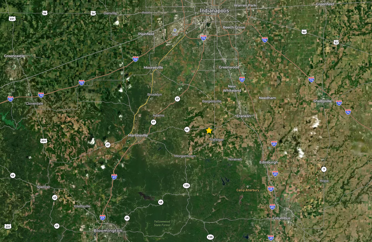 - Approx. 30 minutes from Indianapolis, 35 minutes from Bloomington, 20 minutes from Center Grove Highschool and 20 minutes from Martinsville