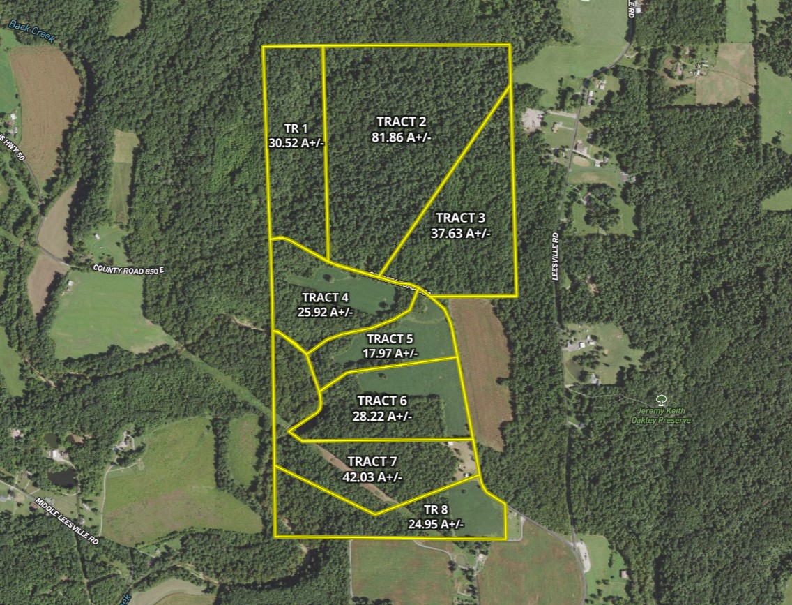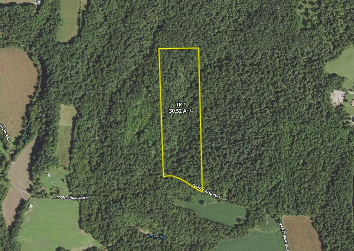 Tract 1 - Check out this all-wooded recreational tract conveniently located off historic old US Hwy 50; sitting 20 mins south of Monroe Reservoir and only a few minutes south of Brown County Hills Conservation Area. This recreational property features 680’+/- of county road frontage along paved CR 850E and has rugged to rolling topography and beautiful rock-lined wet weather drainages that are ideal for exploring. An existing dirt road follows the creek and provides great access to the back half of the property. A small area in the SE corner of the property sits just off the paved County Road and would make for a great location to park an RV. This property has incredible recreational potential as a hunting property but would be ideal for hiking, camping, trail riding, and foraging, along with a number of other outdoor activities. If you’ve been searching for a perfectly sized all-wooded recreational tract with loads of potential, you should certainly take a close look at this listing. Additional acreage is available. Property is Tract 1 of 8.