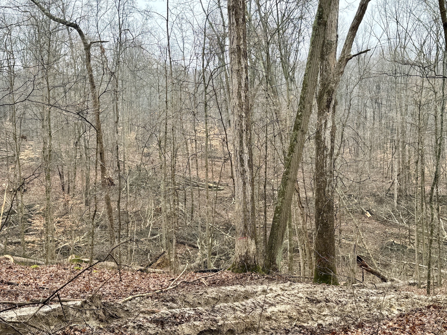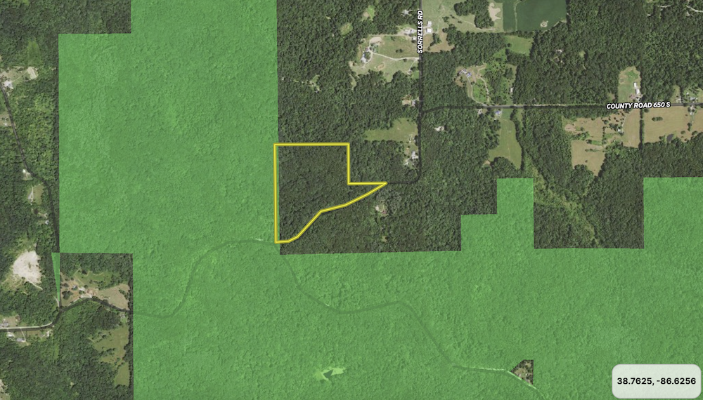 Nestled on the edge of pristine wilderness, this captivating timbered property seamlessly blends with the enchanting landscape, boasting a rare adjacency to the sprawling expanse of Hoosier National Forest. This parcel offers direct access to unparalleled recreational opportunities. Majestic trees create a natural haven for wildlife, providing an ideal setting for hunting and exploration. A current select timber harvest is wrapping up, and marked trees are not included in the sale. The recent timber harvest will allow for a robust spring release of native forbs and vegetation, providing bedding and a food source for wildlife. With new logging trails opened up, you will be able to access the tract with ease. Beyond its recreational allure, this property unveils the potential sites for cabins or possibly the home of your dreams, featuring several identified build sites that harmoniously integrate with the surroundings. Water, power, and fiber are nearby, running at the road from the east side. Immersed in the tranquility of nature, where the possibilities are as vast as the forest that graces your doorstep. This is more than just land; it's an invitation to a lifestyle of adventure, serenity, and the untamed beauty of the great outdoors. This property is also offered in 2 smaller tracts as well.