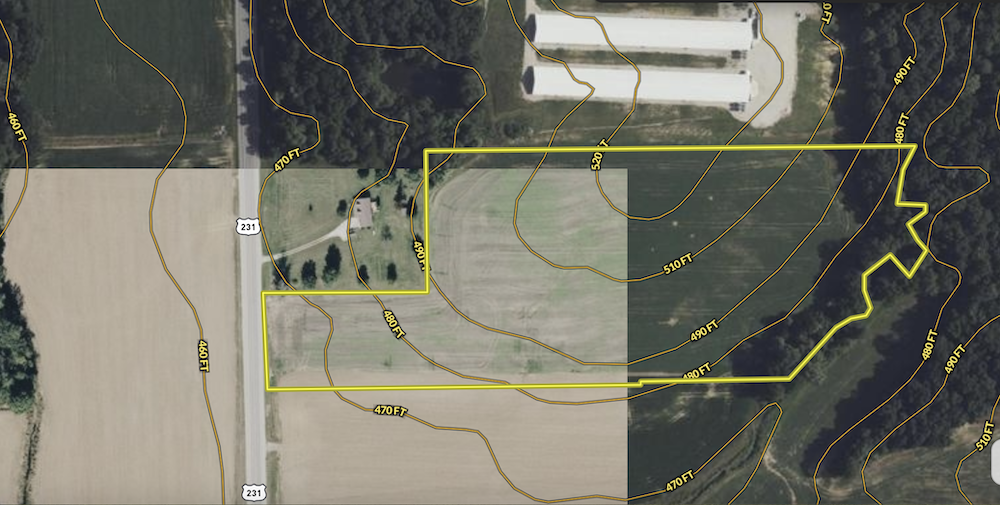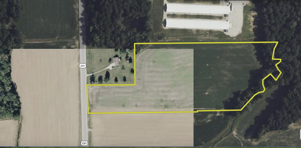 This +/-14.11 acre tract of all-tillable farmland is conveniently located just off US-231 between Jasper and Loogootee. Gently rolling terrain rises toward the back line, creating an ideal elevated build site near the wood line and set well back from the road for privacy. Property features a small pond with a creek bed behind it, adding water access for wildlife and visual appeal, plus a ladder stand and some deer trails could provide some light hunting or recreational use. Entire parcel is productive cropland and would easily support row crops or hay. Excellent investment opportunity to add a cash-rent tract to existing holdings or to diversify an acreage portfolio. Easy road access and a naturally sheltered building site make this a versatile property for farming, hunting, or a future homesite. Seller is planning on planting a screening of trees and or grasses on the North line as well. (Note: road frontage has a small portion being clipped in the mid-state corridor study path.)