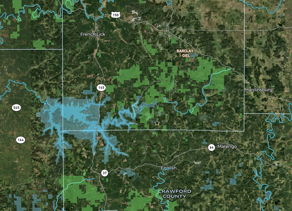 Escape to your own country oasis with this stunning homestead acreage in south-central Orange County, where tranquility meets convenience. Tucked away yet just a short drive from local amenities, this property offers both seclusion and accessibility, making it an ideal location for a vacation getaway or a retirement retreat. The property begins with a 3.25+/- acre open hay field along the road, a perfect spot for your dream home. With paved county road frontage and utilities ready—water, electric, and fiber internet—this site is shovel-ready for your plans. Nature lovers will appreciate the proximity to multiple public boat ramps on Patoka Lake and the vast expanses of Hoosier National Forest, providing endless recreational opportunities just minutes away. Wander to the back of the property to discover nearly 5.5 acres of mature hardwood timber that dips down into a shallow dry creek before rising to the back property line, creating a picturesque landscape teeming with deer and turkey sign. This homestead is ideal for anyone seeking the balance of nature, privacy, and easy access to outdoor adventures.