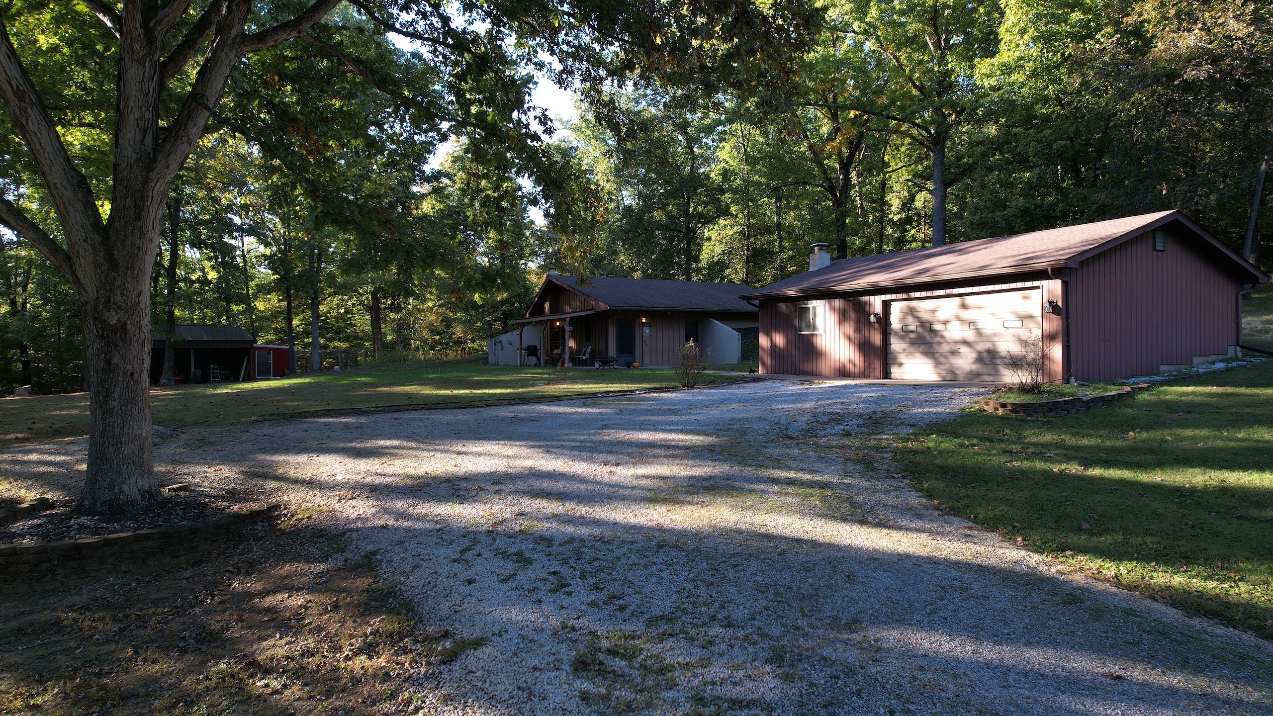 Check out this well-built berm home in a park-like setting overlooking expansive farm fields and backed up to beautifully rugged wooded acreage. This super efficient 1Bed/1.5 Bath Berm home features a comfortable layout that's efficient to heat and cool, a nice detached garage with plenty of storage, a utility shed for a tractor and implements, and a quality-designed chicken coop. The area around the home offers a beautiful park-like setting with mature trees and expensive views of the surrounding tillable acreage. A small frog pond offers a year-round water source for area wildlife and could be expanded if having a fishing pond is on your list. The current owners report seeing both turkey and deer almost daily on the property, and several parts of the wooded acreage show clear signs of wildlife with multiple year-round deer scraps serving as dusting bowls for the turkeys. There is no doubt you could fill your freezer every year with the wildlife that visit and stay on the property throughout the year. Apart from being an appealing lot in a desirable area, the location of this property is absolutely ideal, providing a super secluded country setting while sitting only a short drive to many area attractions and thoroughfares. If you've been looking for a property to create your ideal Southern Indiana homestead, you'd be hard-pressed to find a better candidate. Give us a shout today for your personal tour!