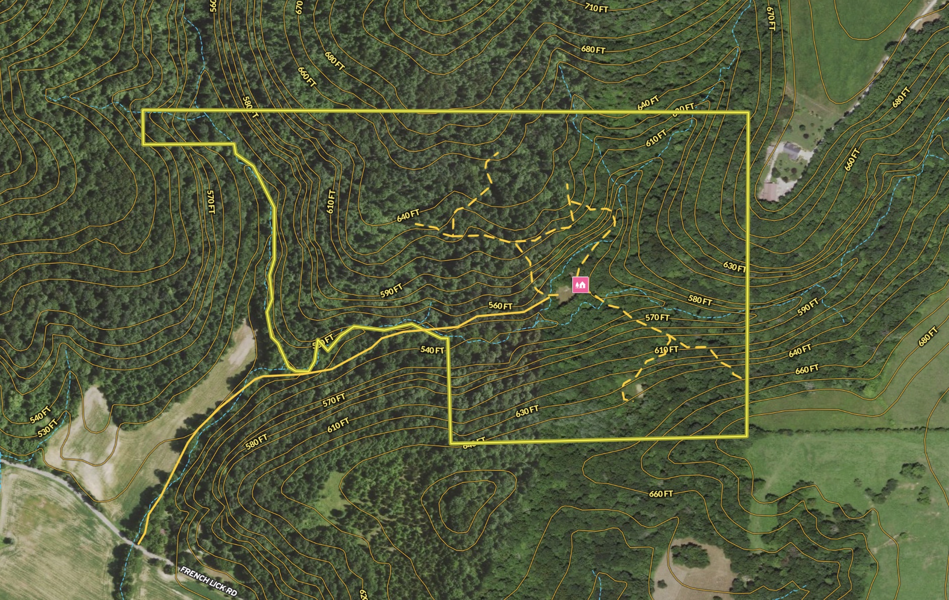PRICE REDUCED! Situated in an ideal location sits this secluded cabin retreat property that features approx. 12'x30' one room cabin, established trail system and spring fed drainages with waterfall features all surrounded by mature forest. Behind the gated entrance you’ll follow the easement road across a creek and back nearly 1/2 mile from the country road to a secluded 1/2 acre clearing nestled in a wooded hidden valley that feels like the middle of nowhere! Towering trees around the cabin set an immersive atmosphere for unwinding with nature. The trails on this property provide great hiking, horseback riding, or ATV riding opportunities while providing access to the remote corners of the property. During wet weather, the drainage behind the cabin features an impressive waterfall area that is sure to be a hit with any visitors. Imagine falling asleep in the cabin to the sound of rushing water from your very own waterfall nearby! If hunting is high on your list, this area has a history of piebald deer sightings along with some great bucks and turkeys. A small wildlife pond with approx. ¼ acre clearing would make for an ideal ridgetop food plot location for catching cruising bucks along a nearby bench in the topography. Marketable timber exist on the property and could be harvested to offset the purchase price. This property also sits merely 15 mins from the Patoka Lake main gate and only approx. 7 mins from historic French Lick. All told, this property features many “must haves” todays buyer is looking for. If you’ve been searching for a secluded and remote cabin retreat property that offers plenty of room to roam, you should certainly take a closer look at this listing.