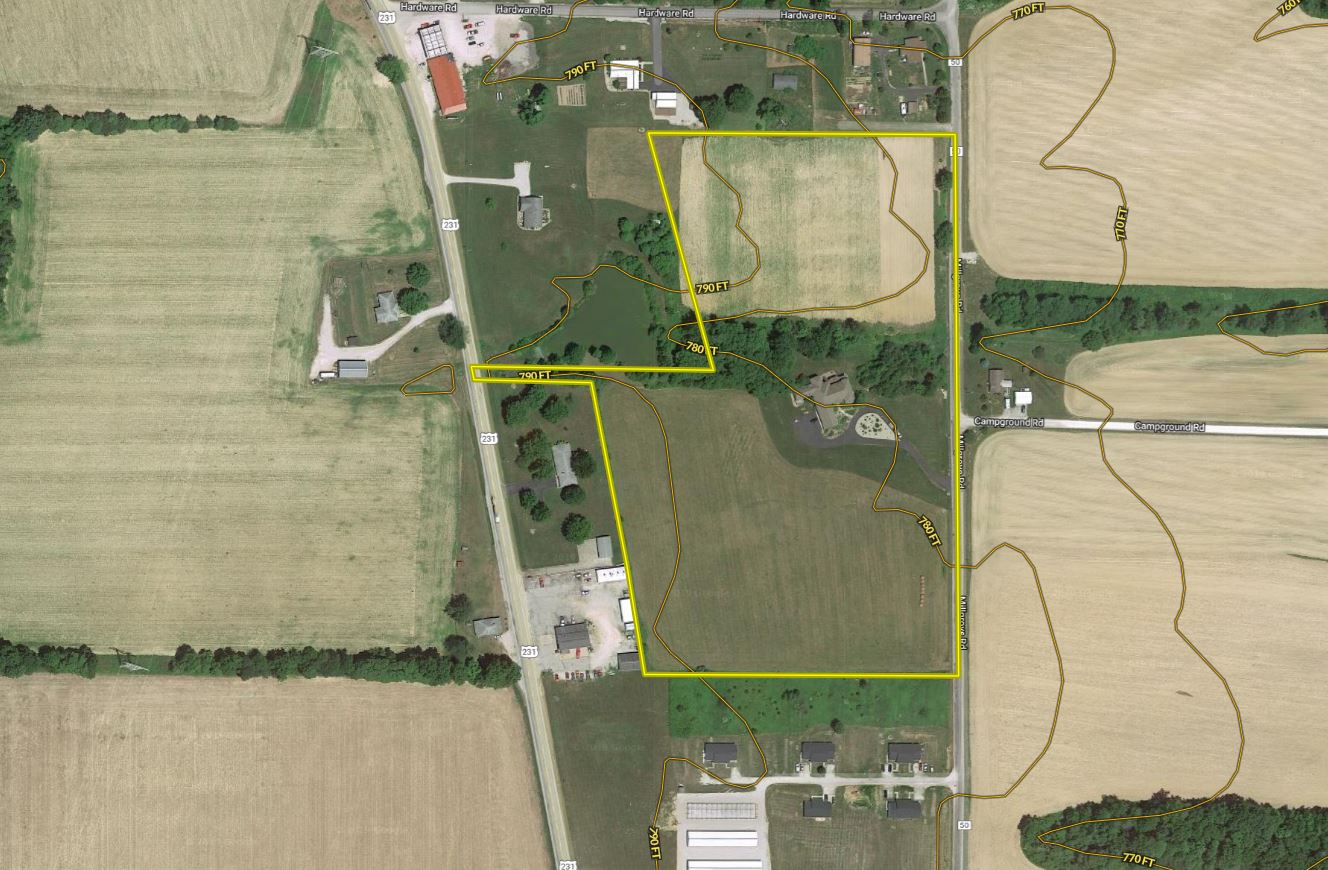 - Property has road frontage off 231 and ample road frontage one street over on Millgrove Rd