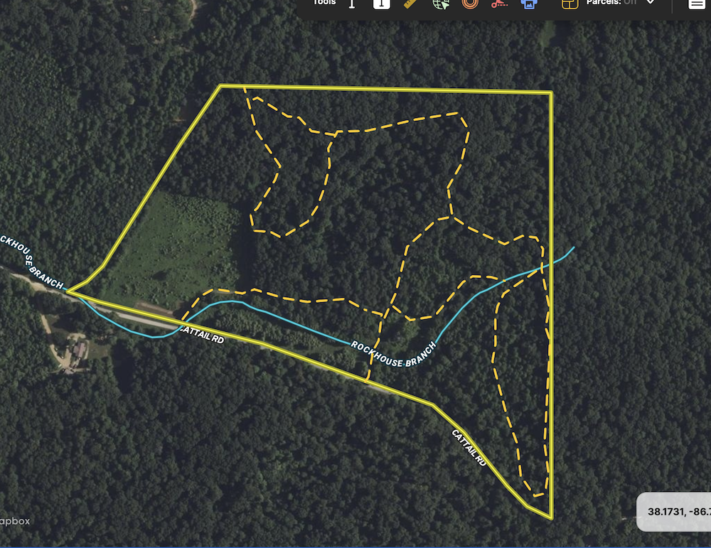 Adding to its appeal, this property is surrounded in every direction by scattered sections of the Hoosier National Forest, offering additional public acreage to explore and hunt. The combination of private and public land access enhances the recreational opportunities in this area.