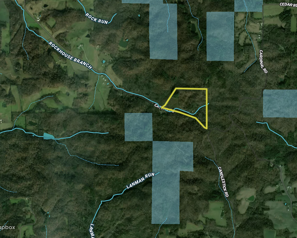 In the southwest corner, a recently reopened 4.5+/- acre clearing offers an excellent potential homesite or cabin location. Surrounded by mature white pines that create a peaceful atmosphere, this area provides a natural backdrop for those who appreciate privacy and scenic woodland surroundings. The rolling topography and established trail network make exploring the property’s unique terrain easy. Rock-lined drainages wind down from white oak ridges to a picturesque creek bottom, creating both visual appeal and diverse habitat for wildlife.