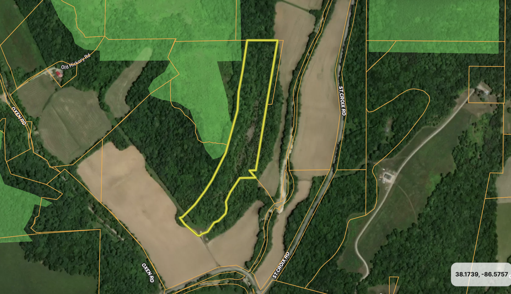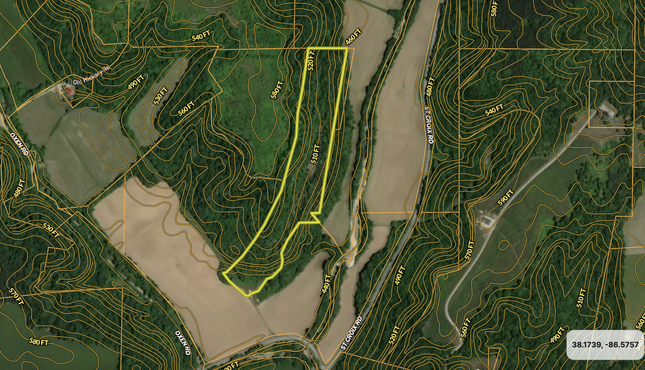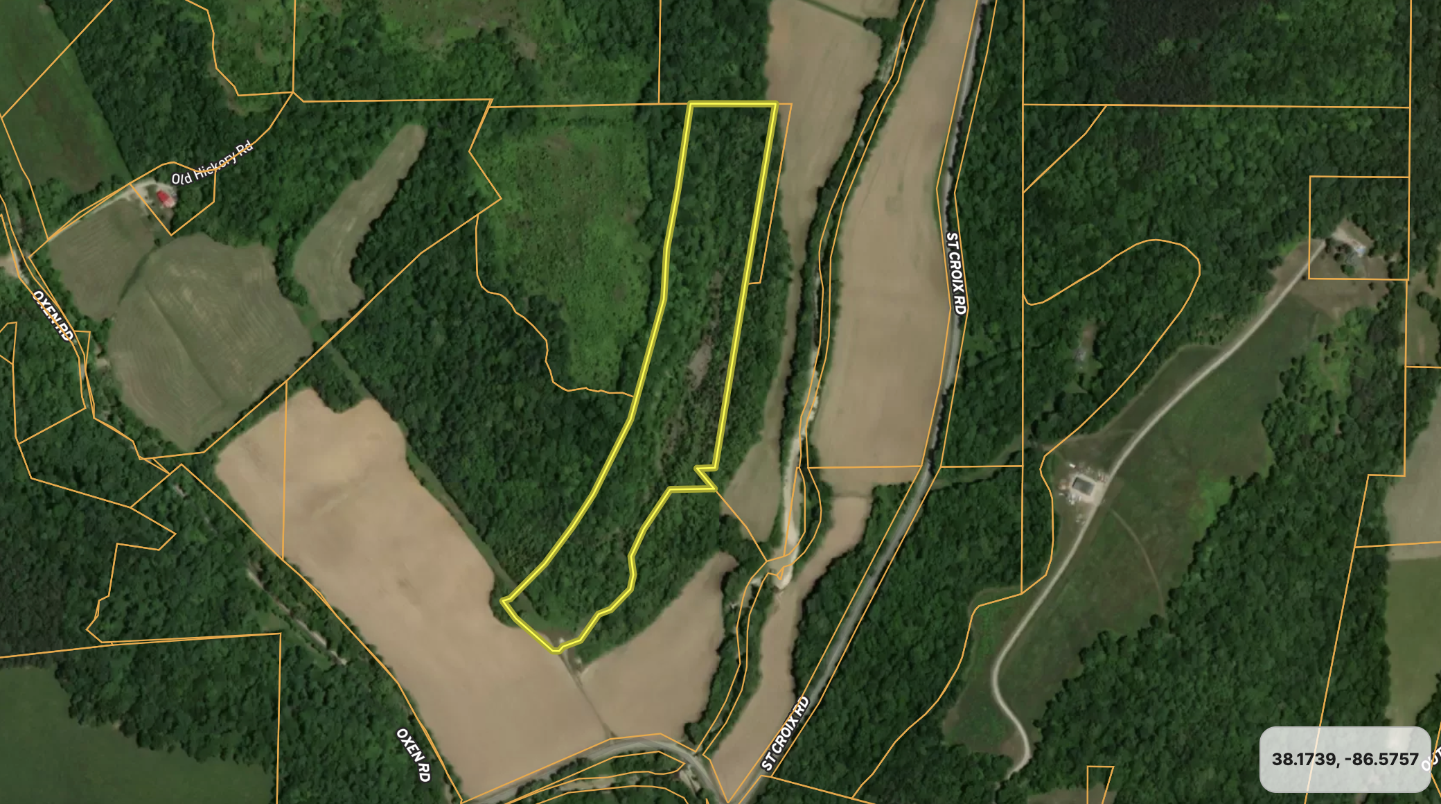 This property dates back to 1942, when a once functional limestone mine was abandoned. The history in the area at the time was rich with talk of abundant minerals, oil and fossils. As time changes and nature evolved, the old quarry has just over 80 years of growth and is full of life. The property is best described as a U-shaped wood valley. The West side's face in the valley is around 50 to 60 feet in height, while the East side is less drastic at around 20. Walking through the center of the valley, you will notice areas with year-round running water, wet-season waterfalls, and a nice hard rock shelf located almost in the center of the property. A notable number of cedars are scattered up and down the path, and you can tell bucks cruise the trail by all the rubs noticed. The property is situated around many crop fields, with deer funneling in them heavily to feed as the fall months approach. If that's not enough, this tract adjoins a locked piece of Hoosier National Forest with only touching landowners able to access. The area where this is located is known for producing great bucks; with these attributes, you can tell why. The current owner states it's a great place to find Morels in the spring if you like searching for them. Lastly, it's notable to mention a flat possible cabin pad or camper site is located as soon as you step onto the property from the recorded easement for your access. Power and water are located about 100 yards away and could also be possibly utilized.