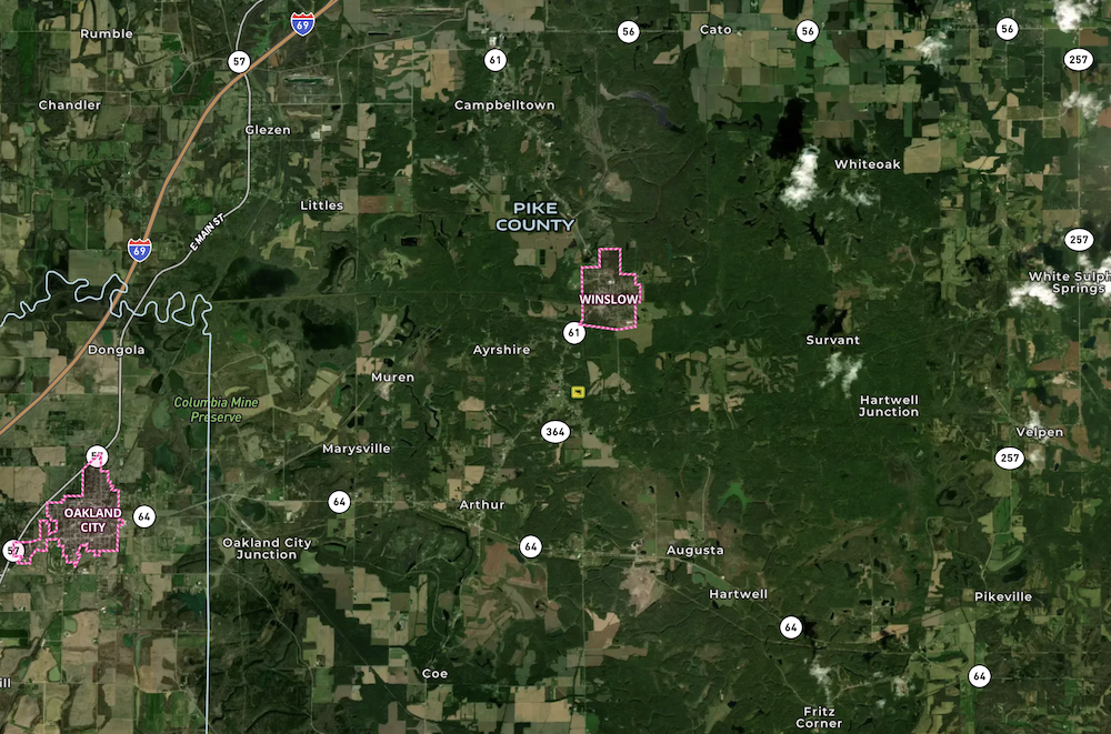Welcome to this exceptional property with approximately 675 feet of paved road frontage along E CR 400 S just south of Winslow, IN. This tract features a beautiful ridge-top cabin site, ideal for a weekend retreat, camping spot, or potentially a primary home. With a culvert already installed along the paved county road and the remains of an old interior road with natural openings in the timber, it is easy to envision a scenic build site situated in a private woodland setting. The property is also positioned between Sugar Ridge Fish & Wildlife Area and Patoka River National Wildlife Refuge. This peaceful area offers tranquility and natural beauty, and the property is home to abundant wildlife. With mature buck sign and lots of turkeys seen on the property, there are some serious hunting opportunities on this small slice of heaven. The ridge top also features a mix of young pine combined with some marketable white oak timber. The southeast side of the property also features mature timber with a small creek running through it. Despite being a smaller tract, there are endless opportunities with this property.