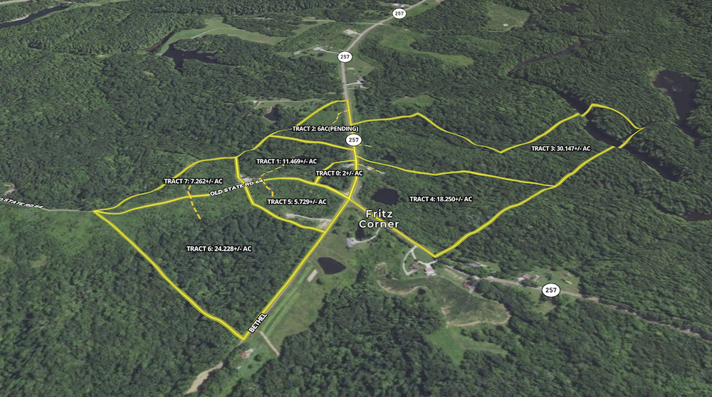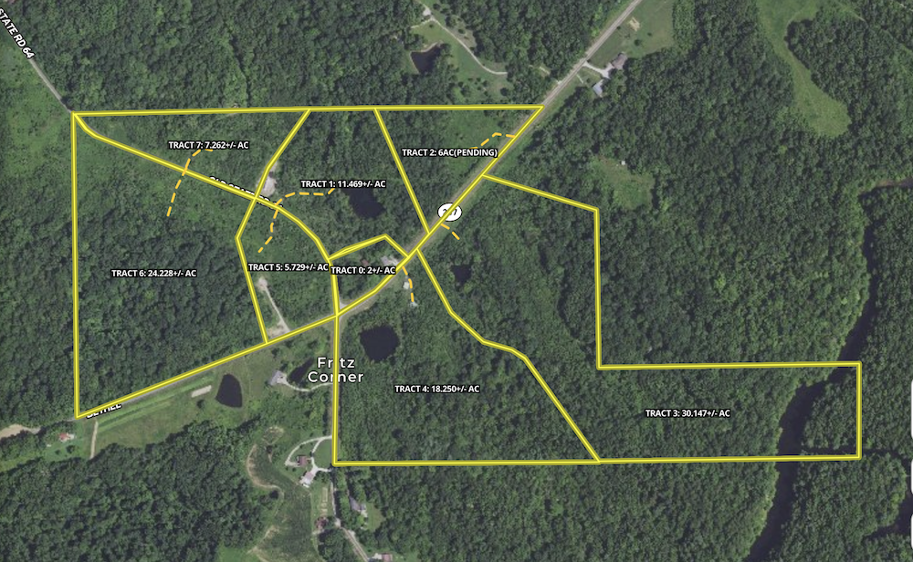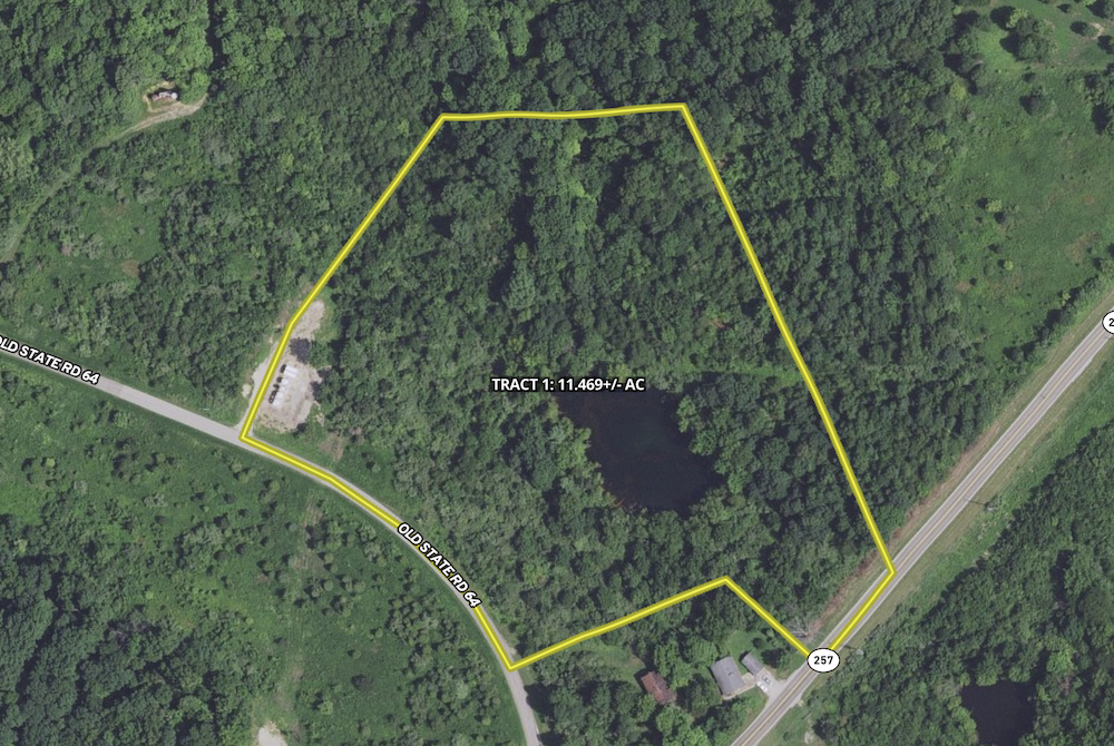 Welcome to Tract 1, a stunning property featuring approximately 160 feet of frontage along State Road 257 and over 500 feet along Old State Road 64. The best access is off Old State Road 64, leading to an ideal ridgetop home site that offers breathtaking views of a hidden 1-acre pond surrounded by mature timber. This tract provides multiple build sites, with options along the road frontage and around the west side of the pond, giving you the flexibility to choose your perfect spot. The property offers direct access to water, electric, and fiber internet services—ready to be cleared for your new home. Tract 1 is free from restrictions and HOA fees, giving you the freedom to build the home you've always envisioned without limitations. With its prime location in the southeast corner of Pike County, Indiana, this property is ideally situated between Sugar Ridge Fish & Wildlife Area, Pike State Forestry, and Patoka River National Wildlife Refuge. Recreational opportunities abound, with easy access to hiking, wildlife watching, and fishing. The land is rich with deer, turkey, and other wildlife, providing a natural haven for outdoor enthusiasts. Conveniently located just a few minutes' drive from I-69 or I-64, and with Interlake Off-Road Park and Lynnville Park nearby, Tract 1 represents a rare chance to find a beautiful county home site. Embrace the tranquility and charm of this exceptional property and make it your own.