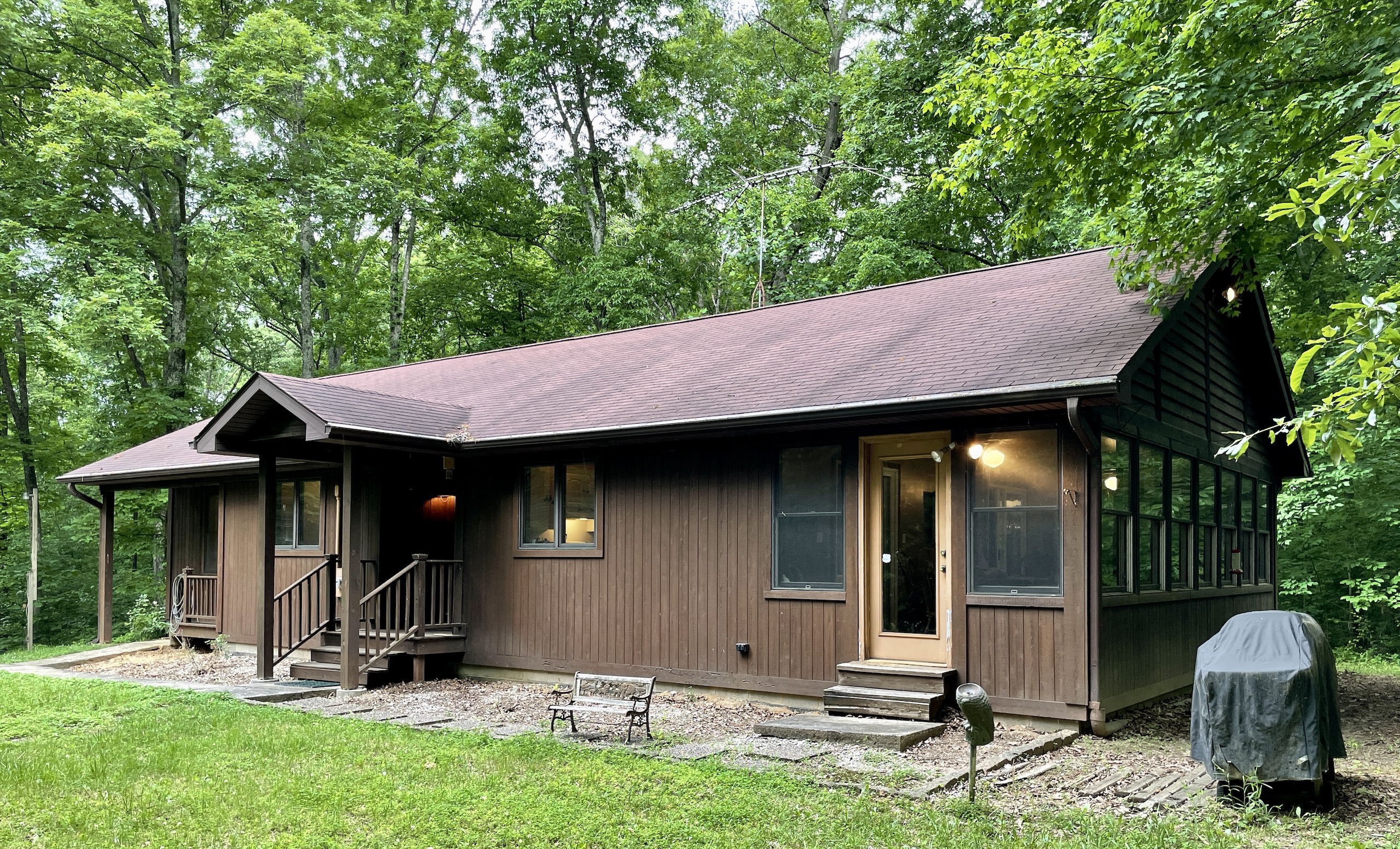 Check out this beautiful well-built cabin nestled amongst mature rolling timber, CRP acreage, and expansive public lands. Sitting at the western edge of Pike State forest(4000+ac), within ½ mile from Patoka National Wildlife Refuge(Currently 10K+/-ac), and only a few miles from Sugar Ridge FWA(8,145 Ac), you’ll be hard-pressed to find a better-suited property for the outdoor enthusiast or lover. Whether you’re looking for a primary residence or just a getaway/vacation rental, we think you’ll find this quaint 2 bed/2 bath cabin offers you and your guests the perfect mix of tranquility and comfort. Situated approximately 700’ off the road and well above the creek bottom below, this quaint cabin melts into its surroundings and immerses its occupants in nature. Our favorite part of the cabin is the large 4-season room; adjacent to the open concept kitchen and family room area, which faces the back wooded area and provides incredible wildlife and bird watching opportunities. Outside, a nice trail system leads from the house and provides access to most of the wooded acreage which includes some marketable hardwood timber. The western boundary of the property is Mill Creek, which flows year-round (the owner has never seen it go dry since owning) yet rarely gets out of its banks. The approx. 4.6 acres along the creek’s edge are currently enrolled in a CRP Filter strip program which pays $1300/year and is providing incredible wildlife and pollinator habitat. The owners also keep a 3+/- acre field along the woods for an ideally located wildlife food plot. Regardless of your interests or intent, if you value the natural world and wish to reconnect with it, there’s no doubt you’re going to fall in love with this property. It offers clean and inviting amenities, mature hardwood timber, a plethora of game and wildlife species, beautiful native prairie with income, and ultimately an immersion in nature rarely achieved. We have no doubt you will be begging to return or possibly refusing to leave….