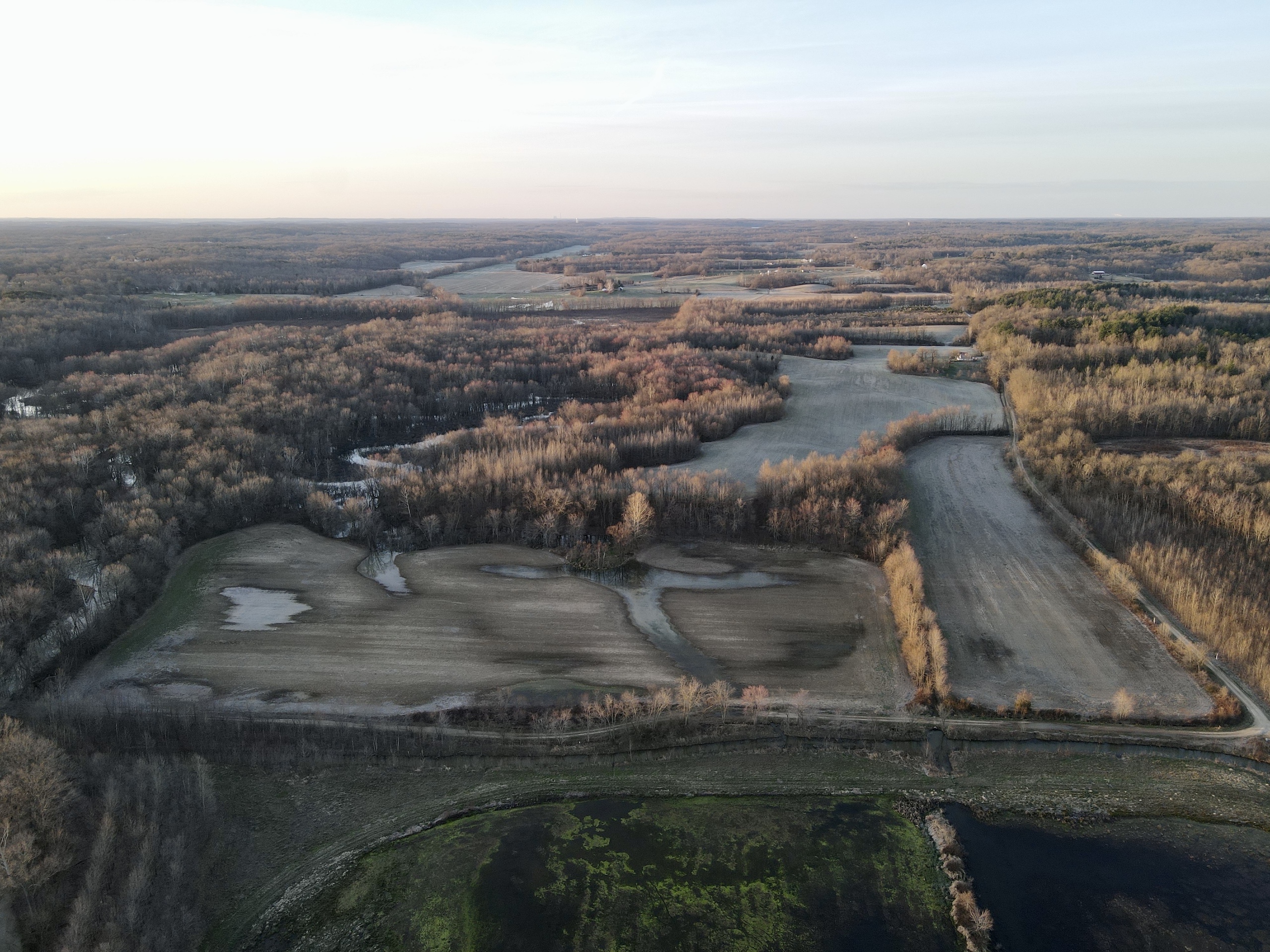 Check out this incredibly unique opportunity to own a property that is completely surrounded by National Wildlife Refuge! This property sits at the beginning of the Patoka River National Wildlife Refuge; “a mosaic of 10K+ acres of non-contiguous parcels containing one of the most significant bottomland hardwood forests remaining in the state.” This property is located at the end of a dead-end, county-maintained road and has direct access to the Patoka River and Dillin Bottoms Wetland. The NE corner of the property sits just below the confluence of the Patoka River and Cup Creek, which meanders through the property for nearly 1500’ and contributes to approx. 5.5 acre slough that is regularly full of resting waterfowl. In addition to the spectacular waterfowl potential, this property also enjoys a healthy population of wild turkey and whitetail deer, with several sightings of both with each visit. An approx. ½ ac farm pond on the property along with several public access pits within walking distance offers great fishing and summertime recreational opportunities. The investment potential of this property is undeniable. 58+/- acres of quality tillable ag land could continue to be cash rented or would most certainly be a candidate for enrolling in a conservation program. The southern end of the property sits within the Pikeville Oil Field and has a history of production with no active leases or wells at this time. There are also known coal reserves on the property as shown in the borehole data available. Further, although this property will most likely not see development anytime soon, it will soon have fiber optic internet installed along its 5000’ of county road frontage. The buyer will also have the option of obtaining a first right contingency on the seller's 3+/- acre homeplace. Whether you’re looking for an uber-safe inflation-resistant investment, an expansive and secluded country home build site with no potential for neighbors, or a one-of-a-kind outdoor recreational property that will surely produce, this property has you covered. Contact one of the Listing Agents today for a private showing.