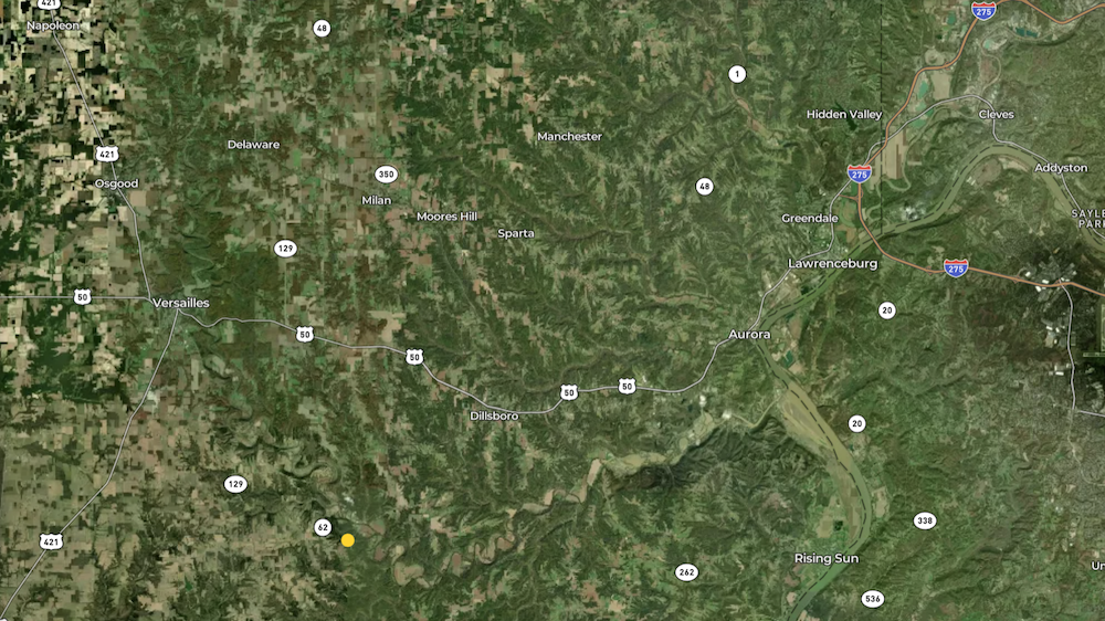 Access is strong, with road frontage on two sides. The nearby town of Friendship is just down the hill, where dining is convenient, including the local tavern in town. The nearby towns of Versailles, Indiana, and Dillsboro, Indiana, provide additional shopping, dining, and services. Regionally, the area is rich in outdoor recreation, including the nearby Versailles State Park and Big Oaks National Wildlife Refuge for hiking, fishing and camping.