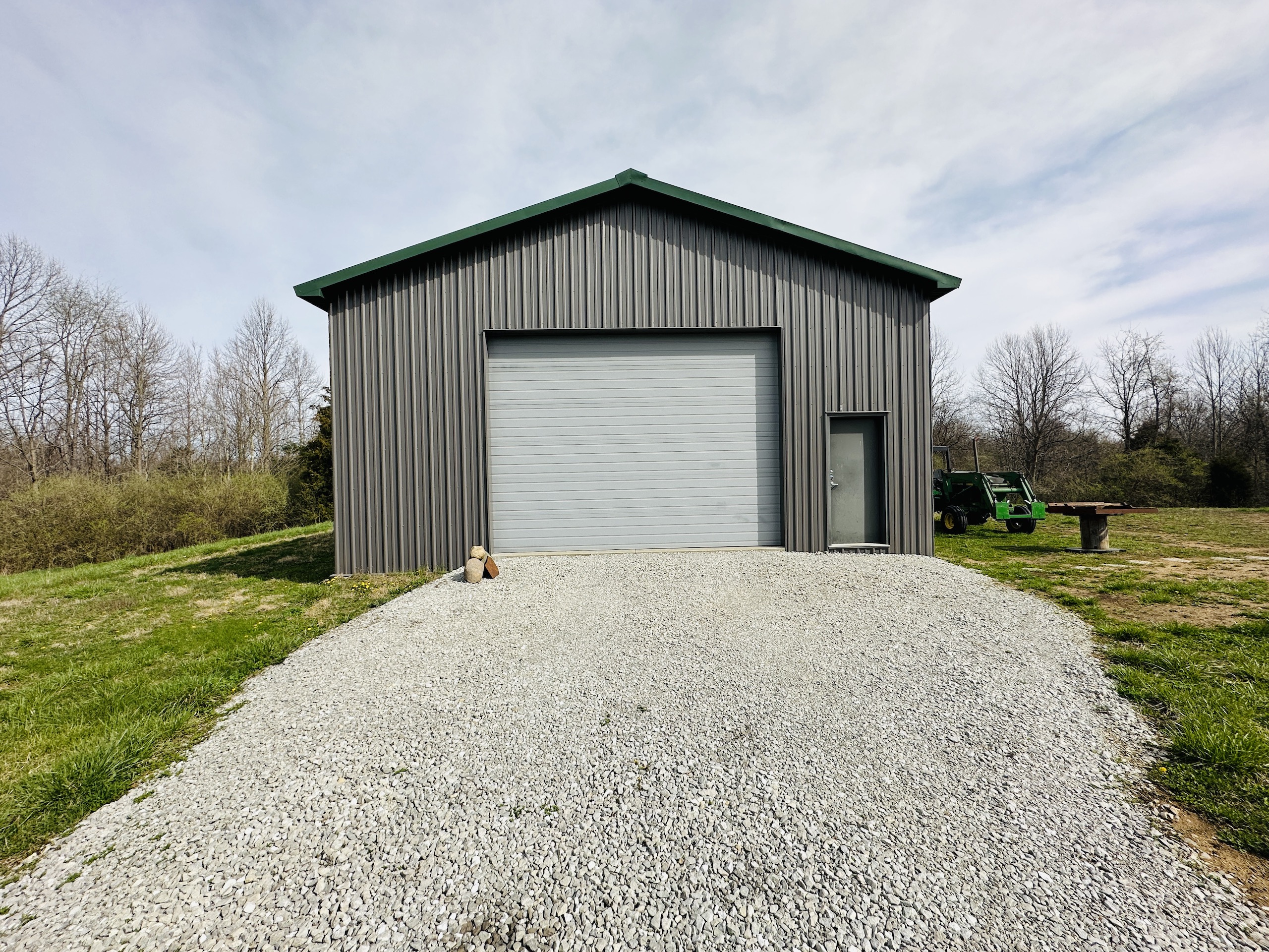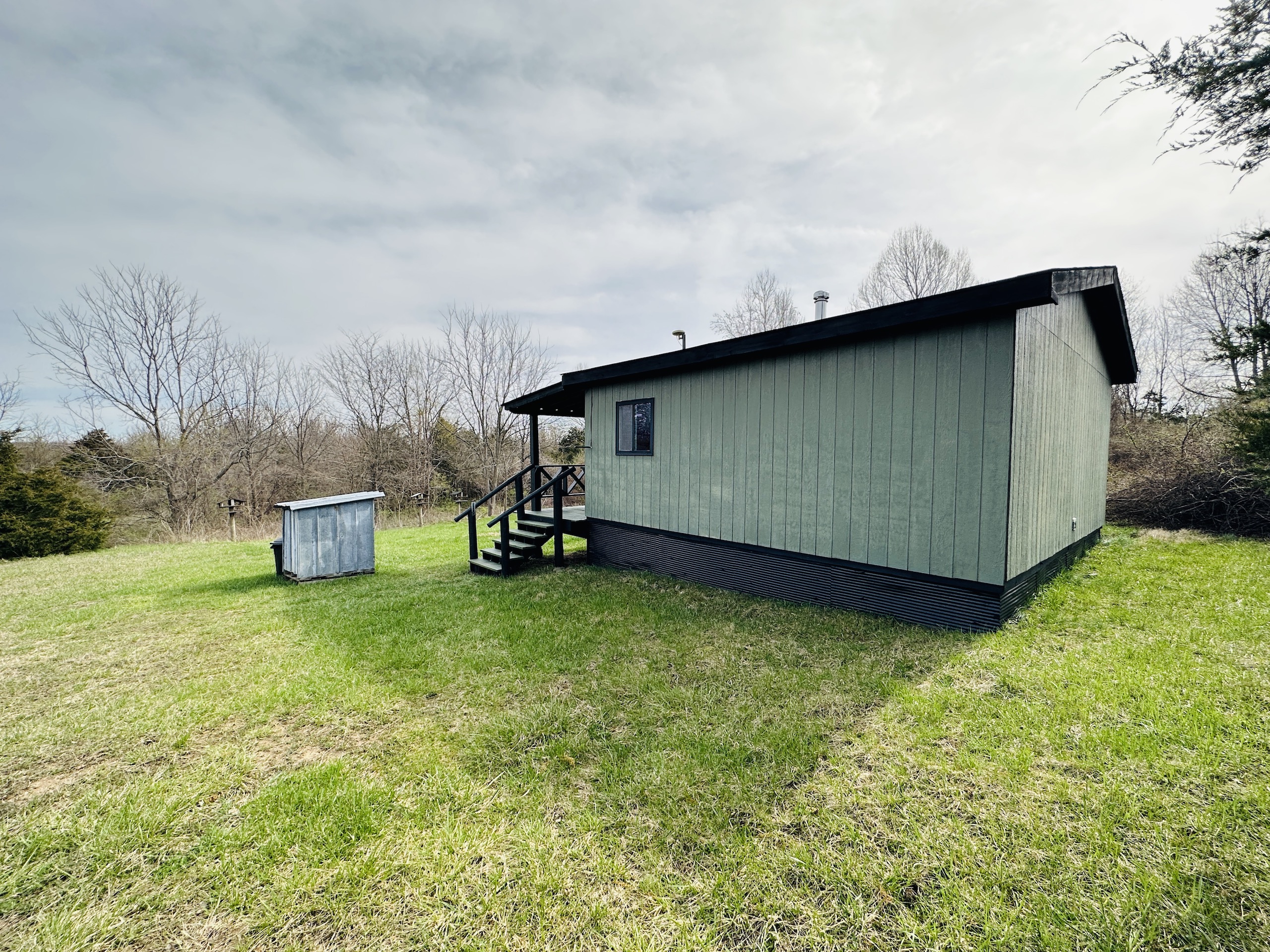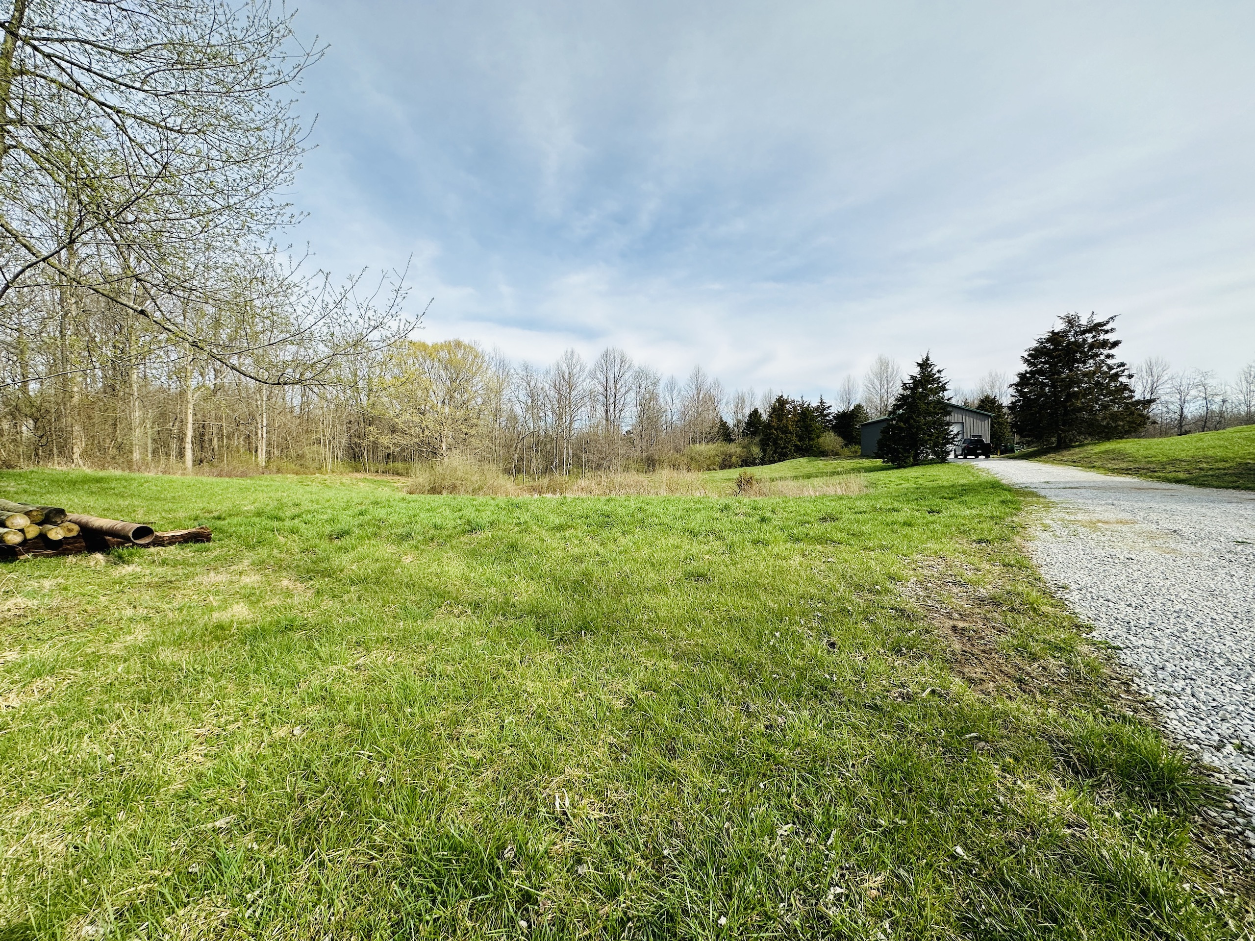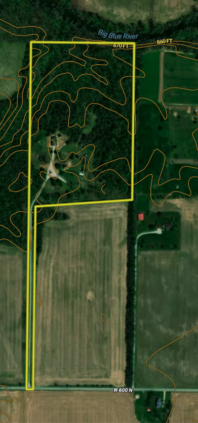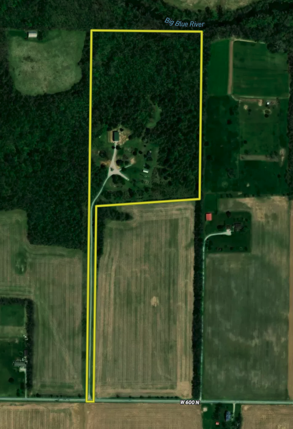 Escape city life to a private retreat with this rare wooded lot, nestled away from the main roads and offering views of the serene Big Blue River. This tract has ultimate seclusion with a gravel driveway that leads approximately 450 yards back, a quarter mile off the main road. The driveway opens into approximately 3.5 acres of manicured grass, perfect for picnics and outdoor activities. The drive continues to a 60 x 30 pole barn that boasts concrete floors, ample lighting and outlets, a wood-burning stove, and a bathroom that simply needs to be connected to the existing septic. Inside the cozy 400 Sq Ft. cabin, you'll find a fully equipped kitchen, a loft, and a full bathroom. For additional storage, a semi-trailer is located on the property and is included in the sale. The remaining land is a small tract hunters' paradise, boasting a variety of vegetation and elevation changes. During our first tour of the property, we were fortunate enough to spot whitetail deer and hear spring gobbles on the neighbor's pasture. The owner shared that three tom turkeys stroll around the cabin several times a week. For an added bonus, the northern border of the tract features an old railroad bed that provides a stunning overlook of the Big Blue River. Don't miss your chance to own this one-of-a-kind property that combines natural beauty, privacy, and all the amenities you need for a comfortable and peaceful lifestyle—showings by appointment only to pre-qualified buyers. There is a scrap metal dump on the northeast corner that will remain on site. The property will be sold as-is.
