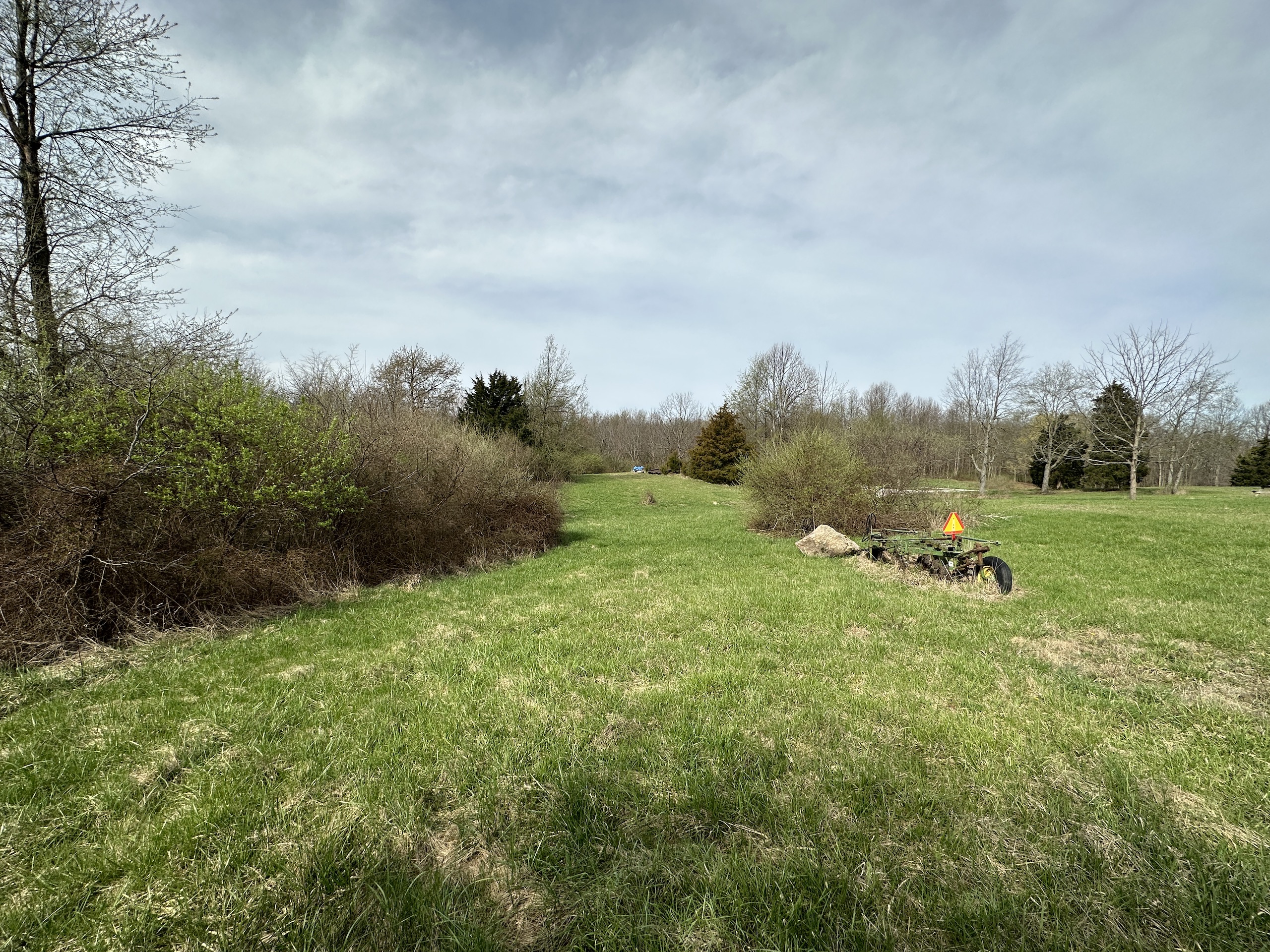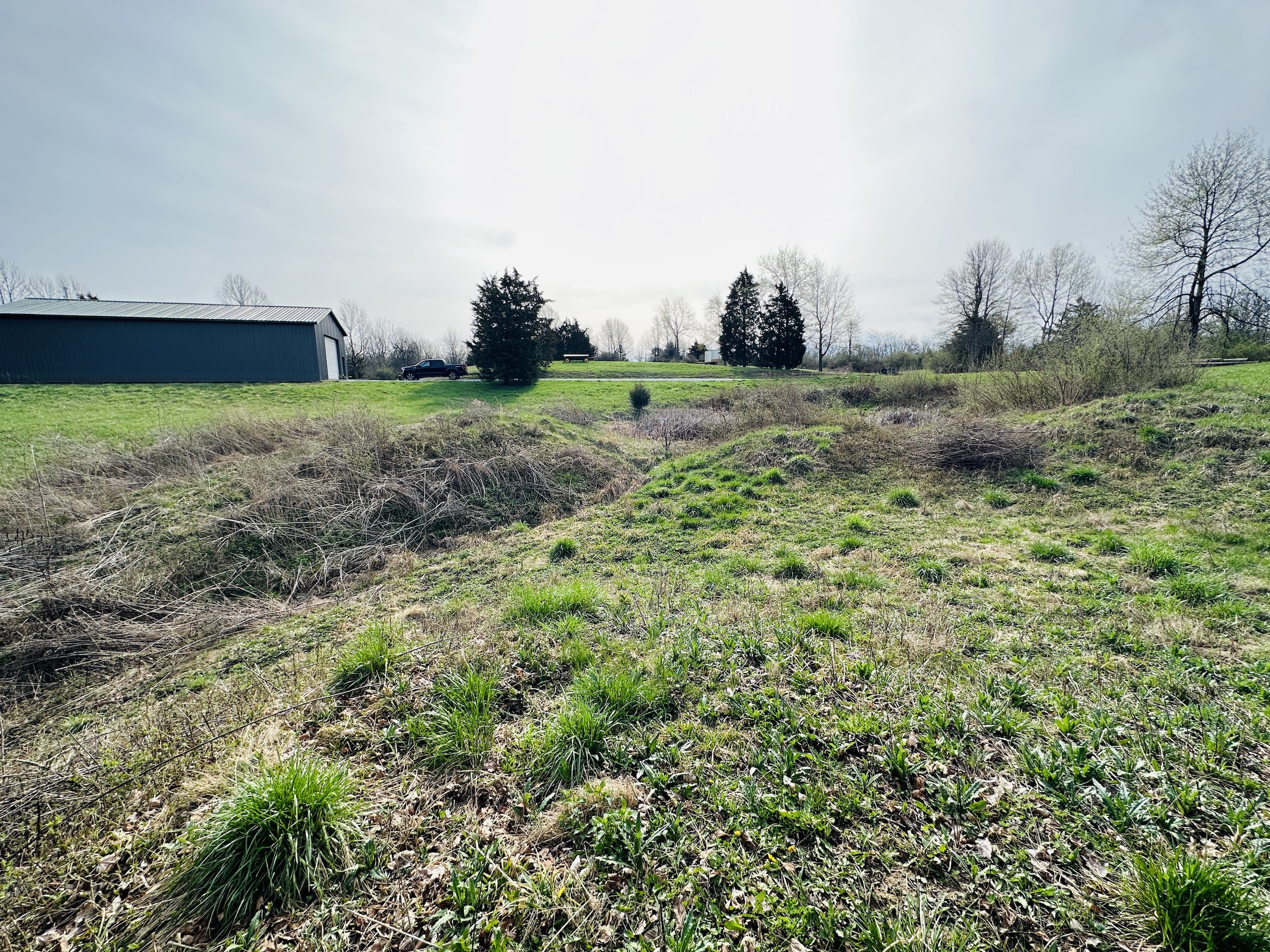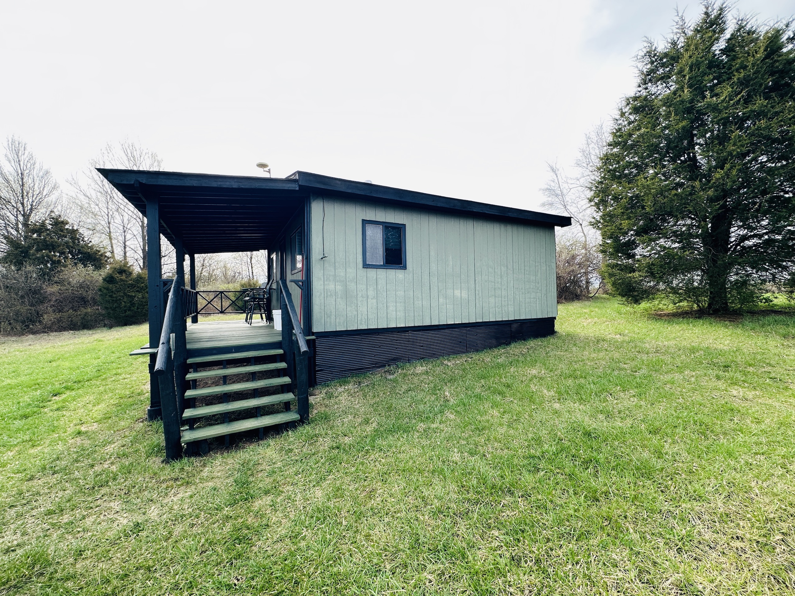 Escape city life to a private retreat with this rare wooded lot, nestled away from the main roads and offering views of the serene Big Blue River. This tract has ultimate seclusion with a gravel driveway that leads approximately 450 yards back, a quarter mile off the main road. The driveway opens into approximately 3.5 acres of manicured grass, perfect for picnics and outdoor activities. The drive continues to a 60 x 30 pole barn that boasts concrete floors, ample lighting and outlets, a wood-burning stove, and a bathroom that simply needs to be connected to the existing septic. Inside the cozy 400 Sq Ft. cabin, you'll find a fully equipped kitchen, a loft, and a full bathroom. For additional storage, a semi-trailer is located on the property and is included in the sale. The remaining land is a small tract hunters' paradise, boasting a variety of vegetation and elevation changes. During our first tour of the property, we were fortunate enough to spot whitetail deer and hear spring gobbles on the neighbor's pasture. The owner shared that three tom turkeys stroll around the cabin several times a week. For an added bonus, the northern border of the tract features an old railroad bed that provides a stunning overlook of the Big Blue River. Don't miss your chance to own this one-of-a-kind property that combines natural beauty, privacy, and all the amenities you need for a comfortable and peaceful lifestyle—showings by appointment only to pre-qualified buyers. There is a scrap metal dump on the northeast corner that will remain on site. The property will be sold as-is.