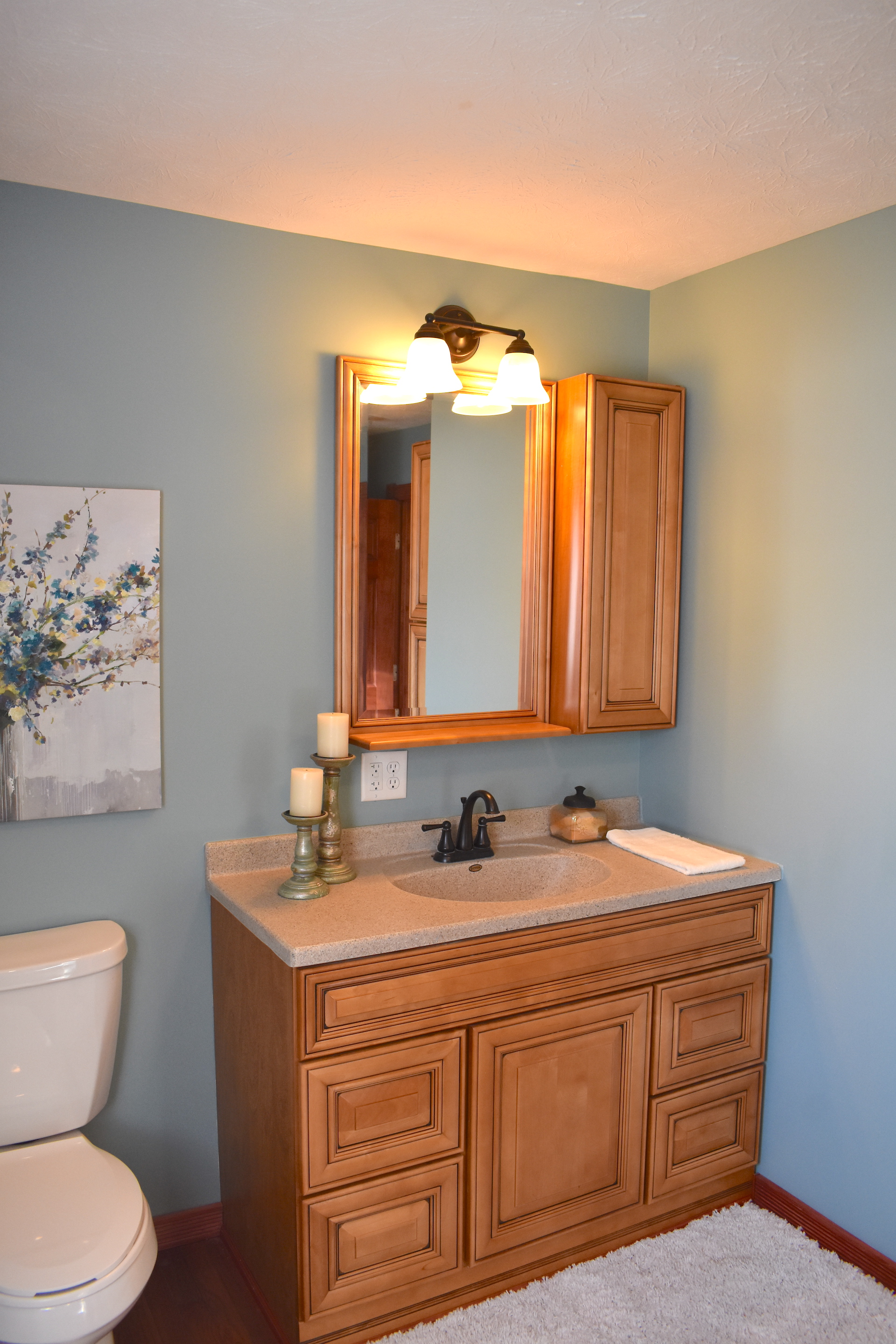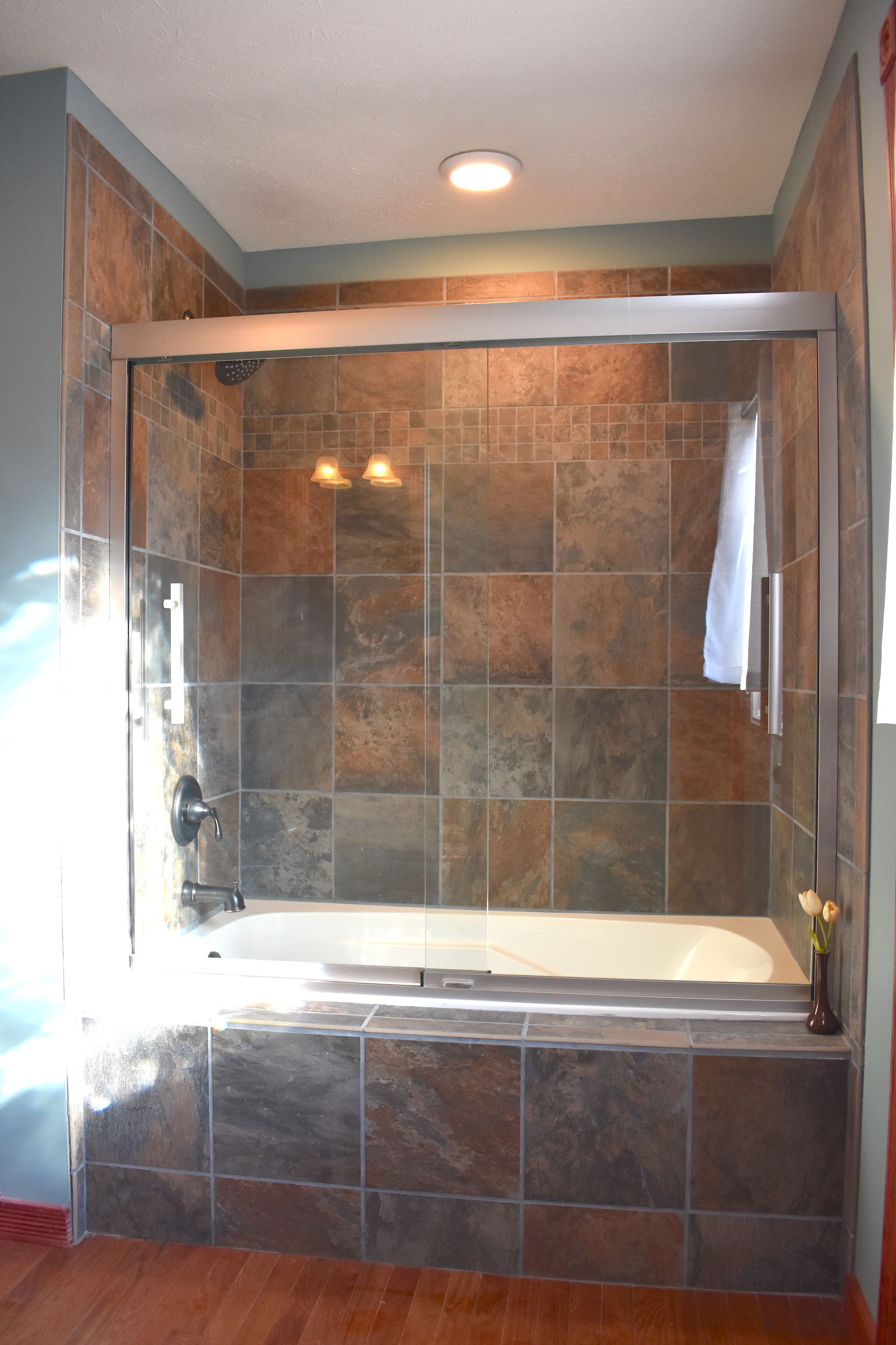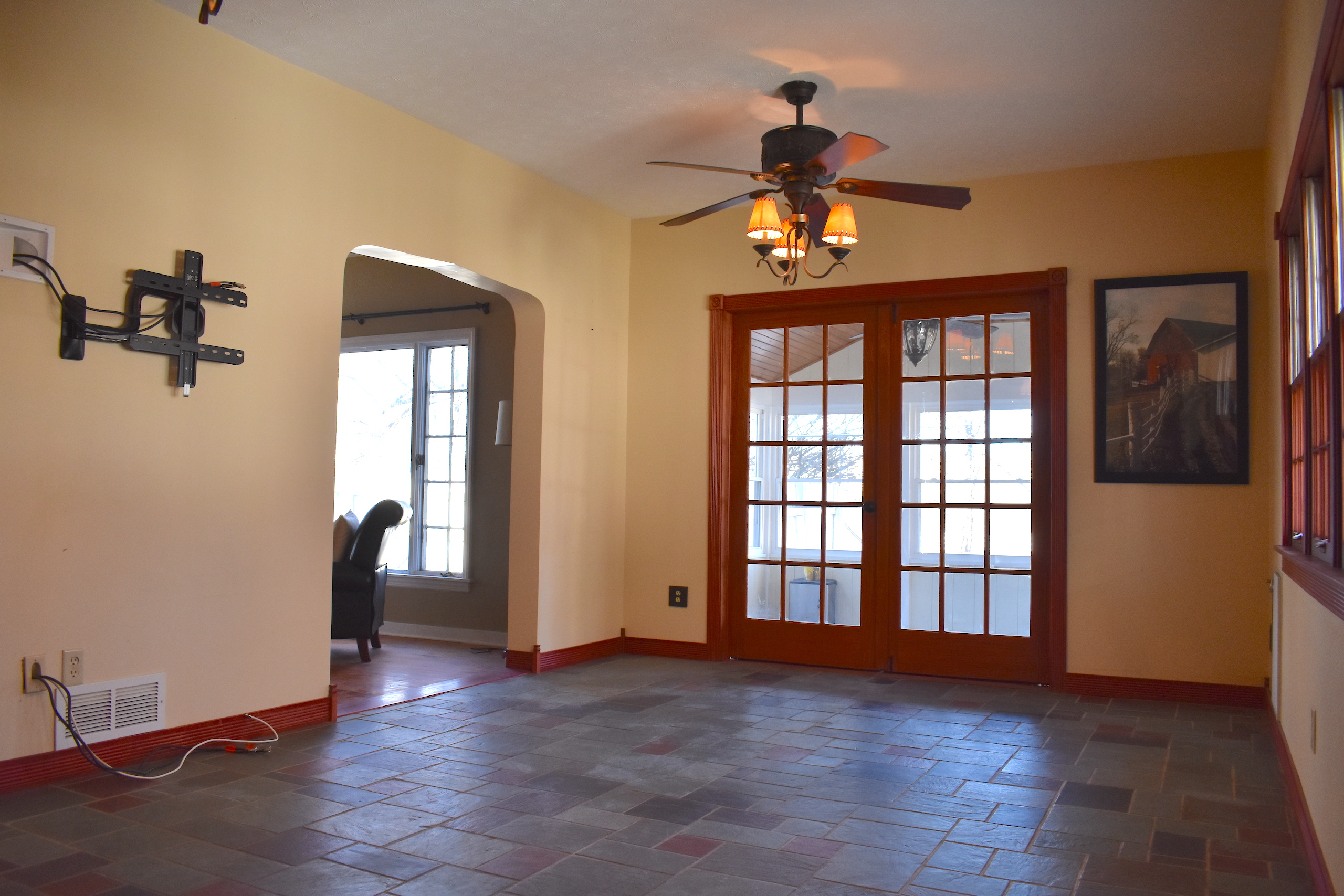 - Hardwood and tile floors throughout