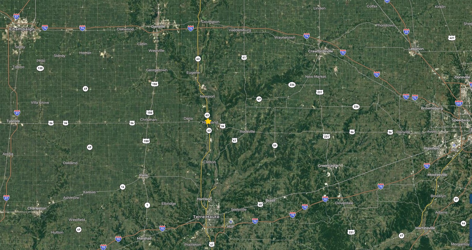 - Approx. 1 hour 20 mins. from Indianapolis, 20 mins. from Terre Haute and 2 hours 30 mins. from Chicago