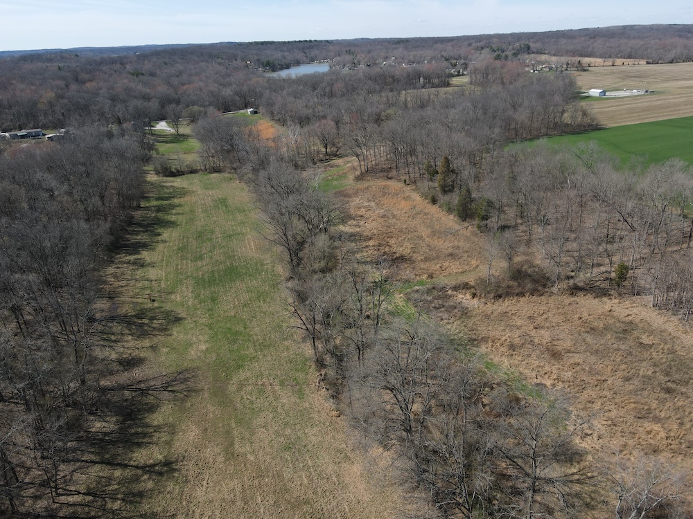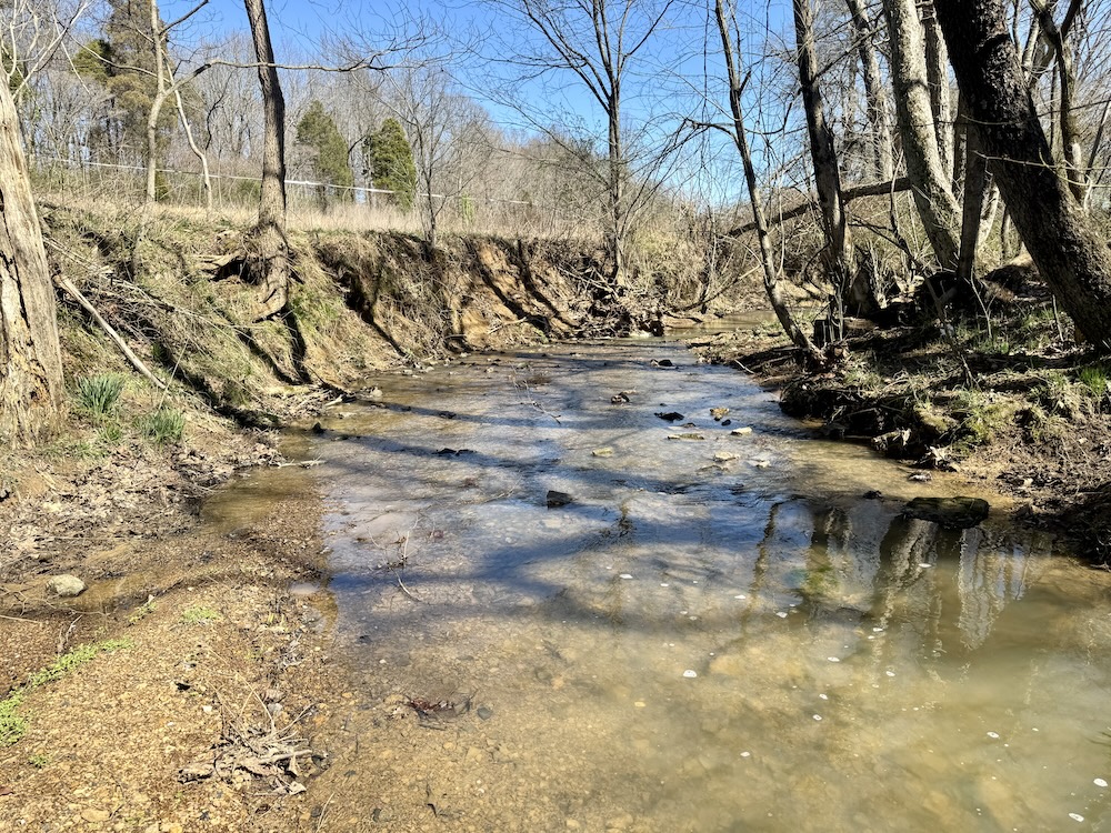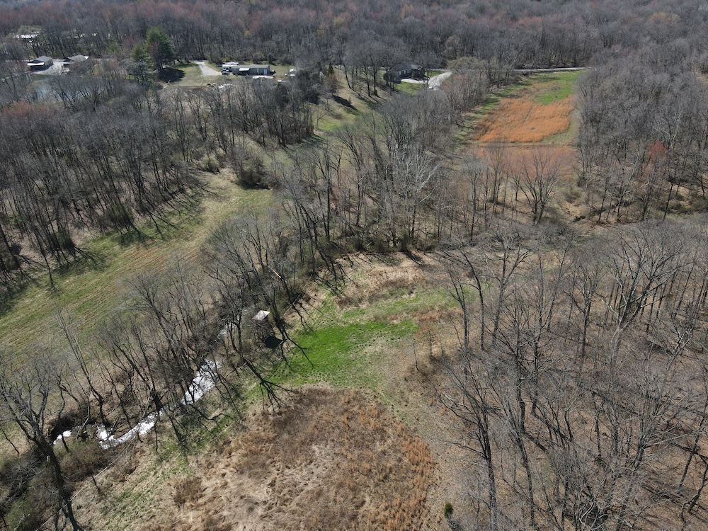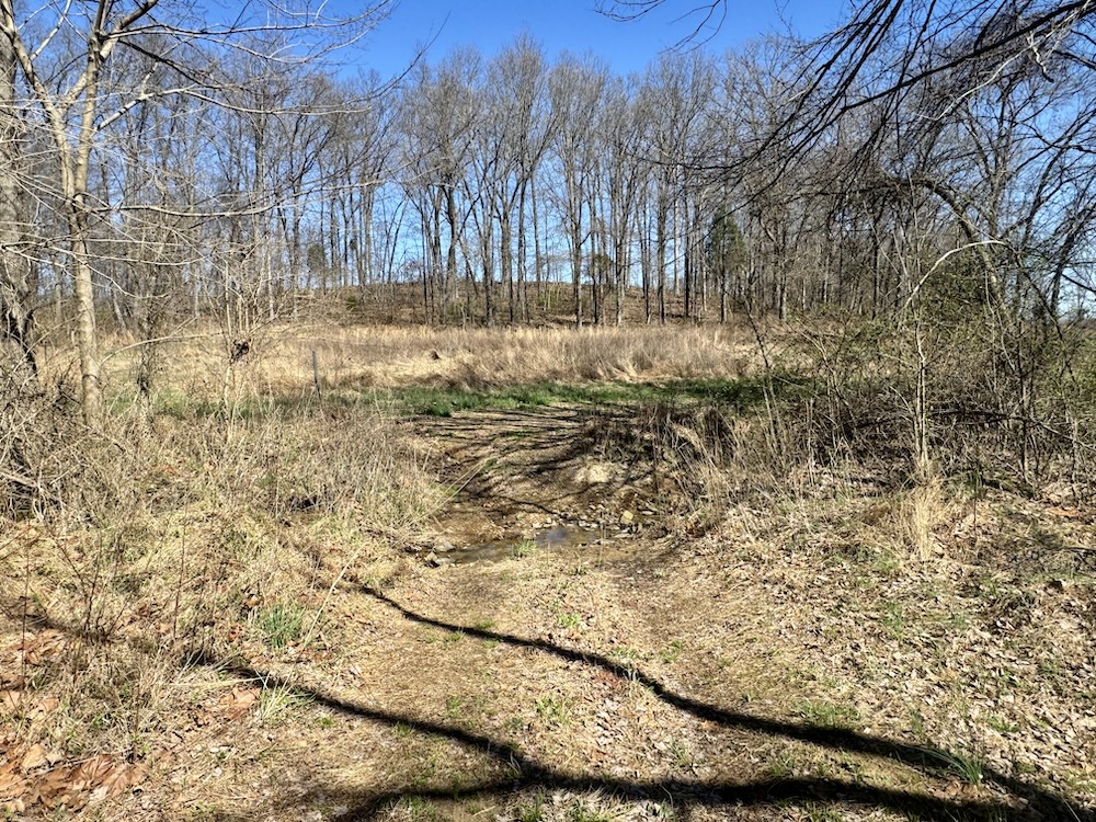 Moving on, there is a 30' x 30' horse barn — a well-sized shelter for equine care, hay storage, tack, and feed. The barn’s location offers convenience for daily chores and easy access to the pasture areas. Speaking of pasture, the property includes substantial pastureland that is currently utilized and ready for grazing. Fencing around the property is already in place, helping contain livestock and define boundaries while supporting a variety of farm uses. For those who enjoy wildlife and hunting or aspire to manage for native game, the land offers thoughtfully placed wildlife features. A clover food plot is established on the property as an attractant and feed source for deer and other wildlife. Nearby, an elevated deer stand commands views over the food plot and surrounding areas—an intentional feature. A trail system runs along the property boundary, providing easy access for walking, riding, scouting, and recreational use while connecting key features such as the barn, creek, and outbuildings. Water and natural features are highlights here. A pleasant, well-flowing creek cuts through the property and is crossed by a covered walk bridge that adds both function and a picturesque focal point. The creek banks are lined with mature walnut trees, offering shade, seasonal beauty, and additional value. The combination of water, trees, and topography creates a diverse wildlife habitat and a scenic environment for daily enjoyment.
