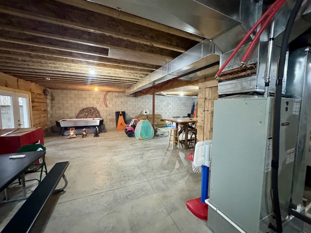 A noteworthy feature of the property is the unfinished upstairs area, ready for your creative imprint. This upstairs space presents an exceptional opportunity to expand the home’s living footprint — finish it with more bedrooms and a private study, create a home office, or develop it into a multi-use family space. Because the shell is already in place, new owners can plan finishes and layout to match personal tastes and lifestyle needs, turning vision into reality while increasing the property’s value. Below, a full walkout basement is well set up, adding substantial usable space to the home. The basement’s walkout design opens directly to the exterior grade, making it ideal for a recreation room, home gym, workshop, or hobby area. With the right finishing touches, the basement could easily become an additional family room, guest suite, or entertainment area that connects seamlessly to outdoor living and the lower yard. Large windows and doorways in the walkout basement maintain light and accessibility while offering direct access to the property’s lower grounds.