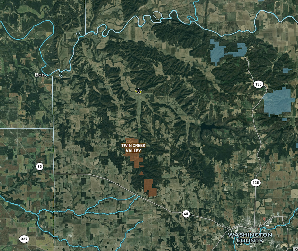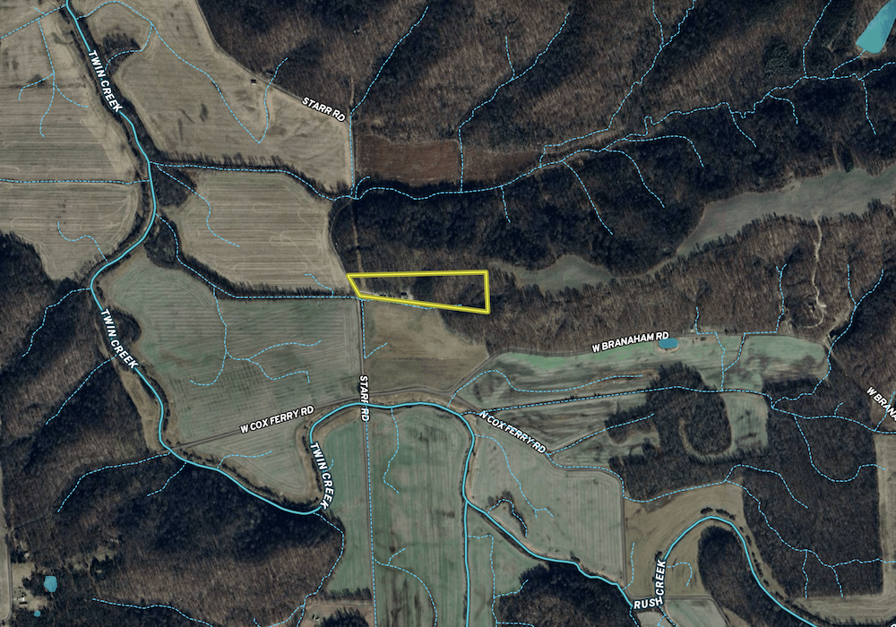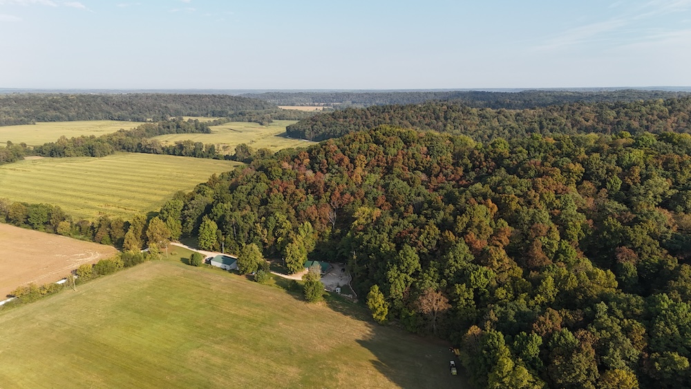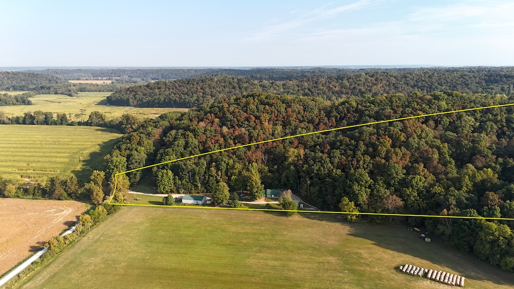 Situated in a rural area, this property balances seclusion with accessibility. It is located approximately 14 miles northwest of Salem, 25 miles northeast of Paoli, and 31 miles southeast of Bedford. Larger urban amenities can be found in Bloomington, located about 50 miles to the northwest, and Louisville, Kentucky, approximately 50 miles to the southeast. The proximity to these towns and cities makes the location accessible while retaining the quiet setting of Washington County. The terrain in the Buffalo Bottoms area is known for its wooded ridges, valleys, and creek systems, offering opportunities for outdoor recreation such as hunting, wildlife observation, and hiking. The acreage around the home provides a setting consistent with these uses and potential for future improvements or expansions. This Washington County property combines a cabin-style residence, modern utilities, flexible outbuilding space, and natural surroundings. Its location and features make it suitable for various recreational and residential uses, offering a property that blends practicality and tradition in a rural Indiana setting.