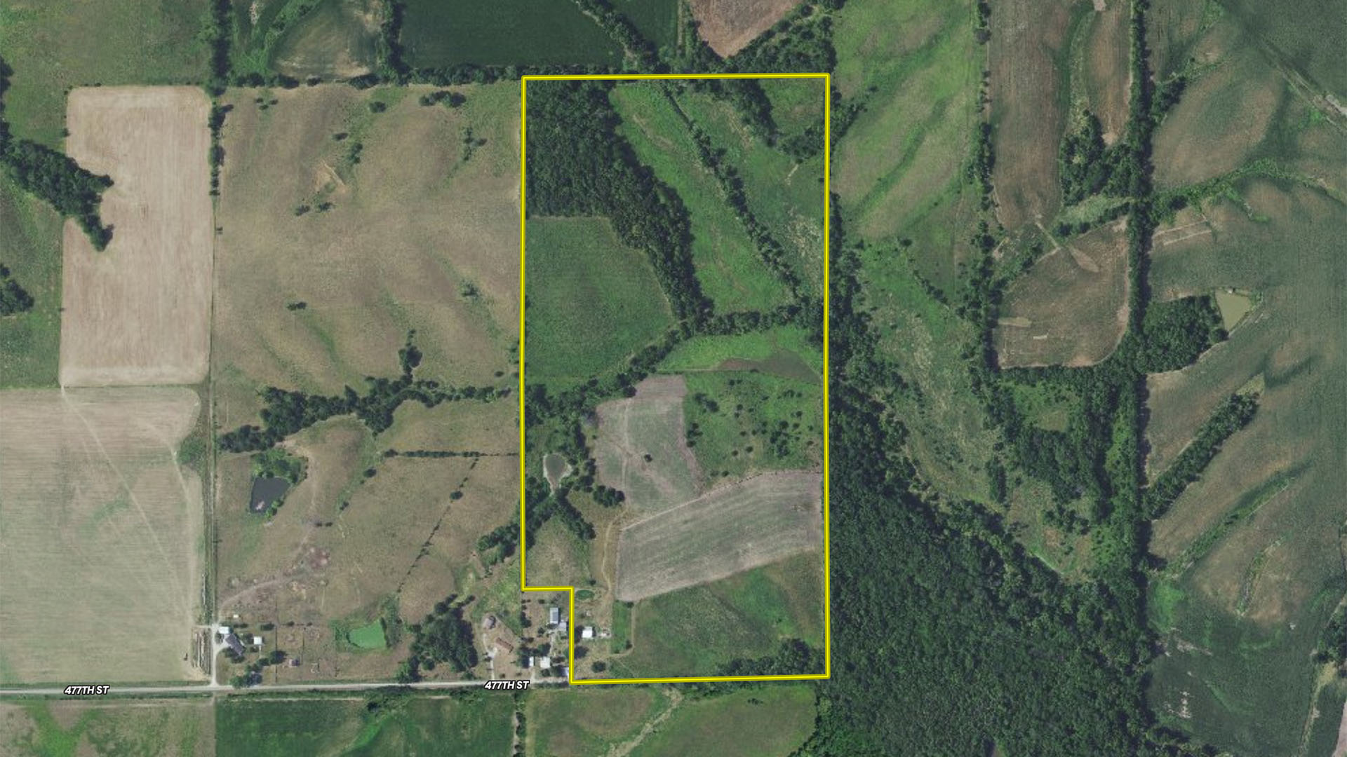 A dead-end road leads you to the southwest corner gate of the property. Inside the entrance is a machine shed for storing equipment and a pond. This area would make a perfect place to build. To the east is approximately 12 tillable acres, which historically have been used as a giant food plot. The late-season hunting here is described as “tremendous”! To the east and southeast is a significant block of timber; to the north is a south-facing hillside of CRP native grasses and a thick east/west creek bottom.