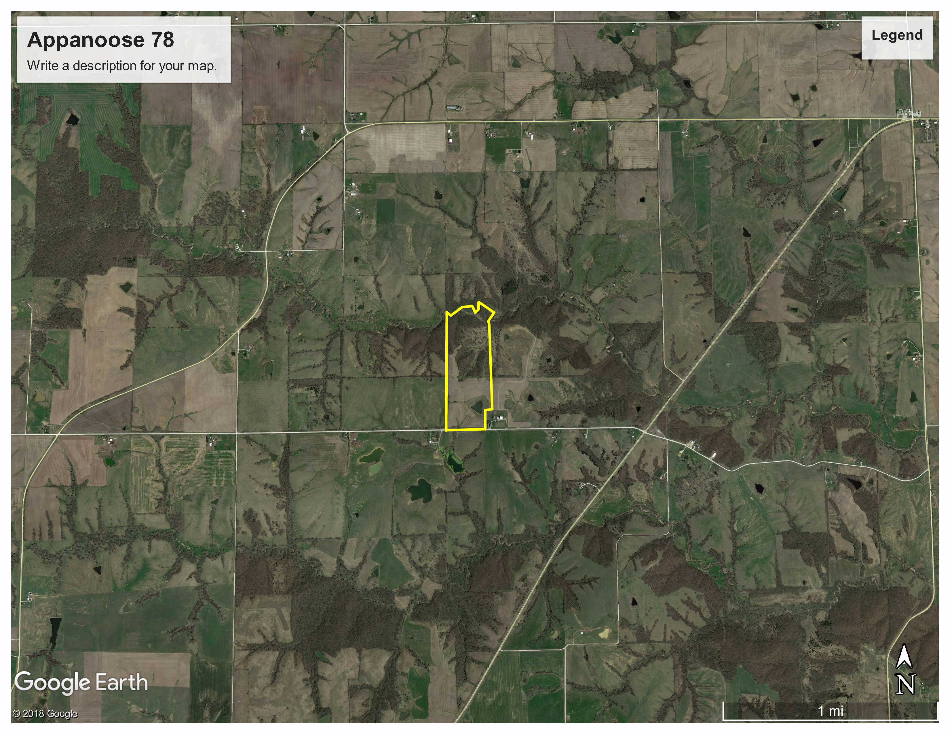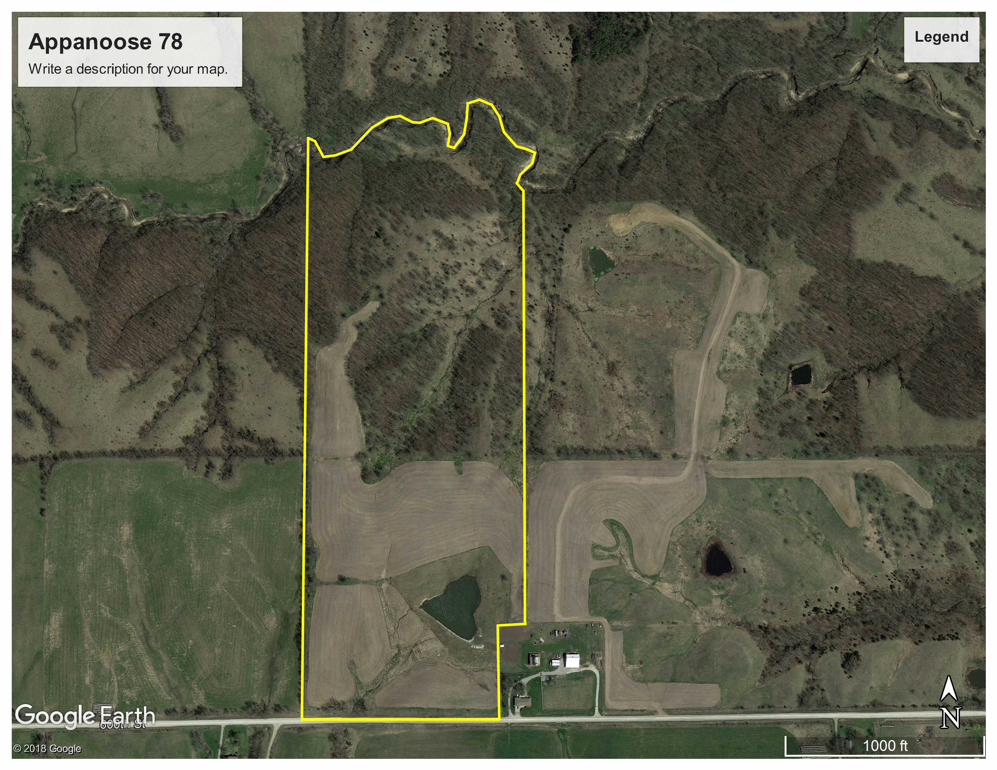 This is a great combo/starter farm for the buyer looking for a little income and some great hunting. The surrounding area around this farm is covered up with heavy cover and timber so deer numbers will be very high and with the creek corridor in the back, your rut hunting should be nonstop activity moving through! This farm has every aspect you would want in a small hunting tract, income, timber, brush, alfalfa, pond, creek, new hunting blind, secluded food plot areas and your utilities are at the road if you want to build a cabin or pole barn.