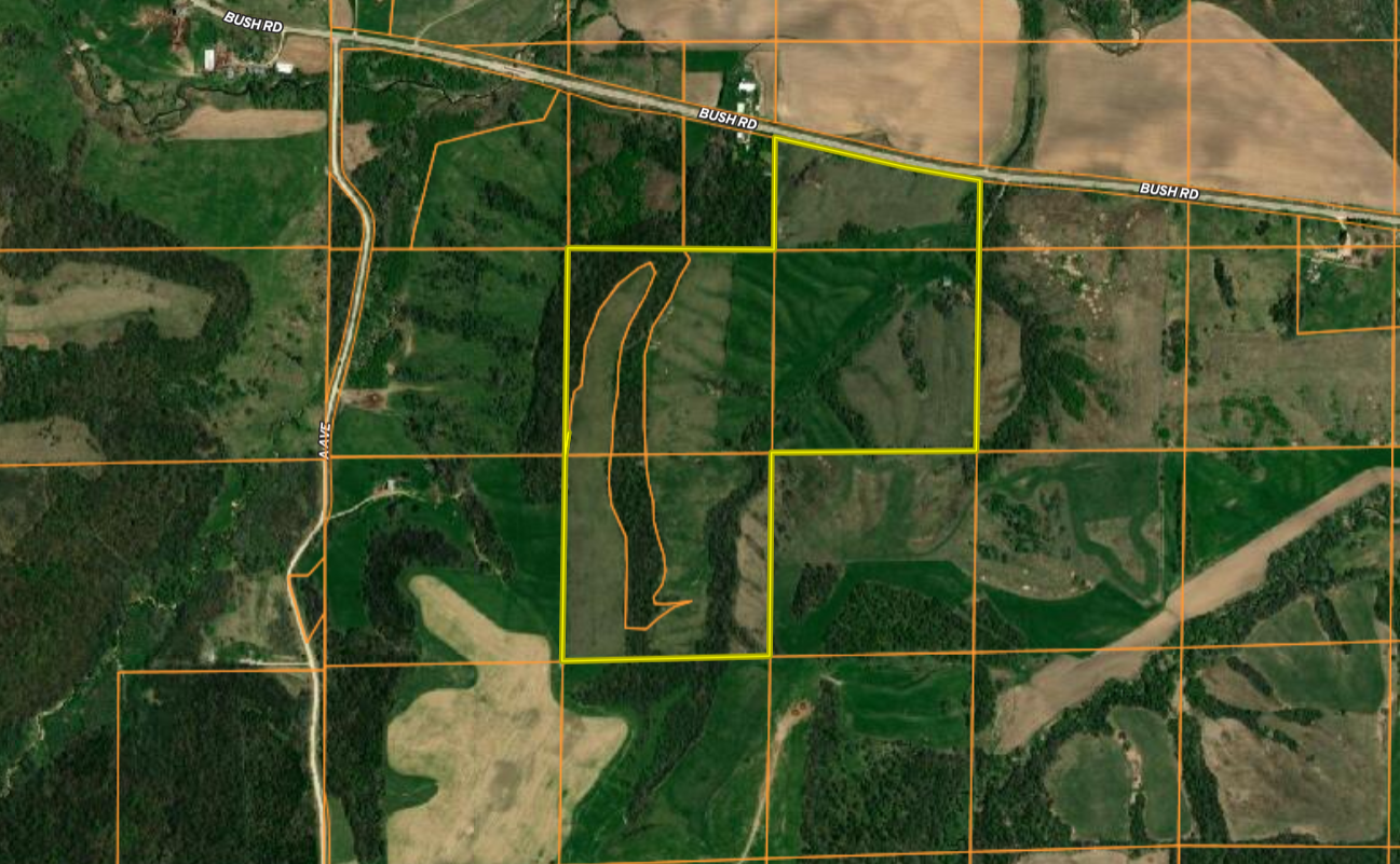 If you are in search of a property in a great area with trophy potential, CRP income, and excellent access, take a look at this one. The farm is currently being used for pasture, investment, and other ag purposes. The layout, topography, location, and area hunting history make this farm a great candidate as a high-level hunting property. With a few minor improvements, I believe the hunting potential could be elevated significantly. The tract currently has 2 CRP contracts providing annual income and making it a secure investment. A spring that originates on an adjacent property flows onto this property, providing an all-season water source. The ribbons of timber create lots of edge and potential hunting sites. Located on a large section featuring rugged terrain, elevated ridges with pockets of thick cover surrounded by ag fields make it attractive to whitetails and other wildlife in the area. The Volga River bottom on the adjacent section north provides more recruiting acres as well as giving excellent views. The property has many options for building your new home or cabin in one of a kind settings. The property is easily accessed from hard-surfaced Bush Road but elevates quickly, providing a secluded and very private feel.