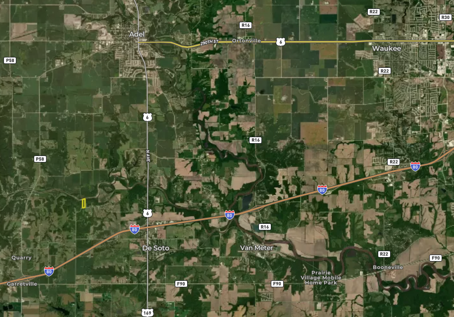 - Only 6.8 miles to Adel, 2.9 miles to De Soto, and less than 16 miles to Jordan Creek Town Center