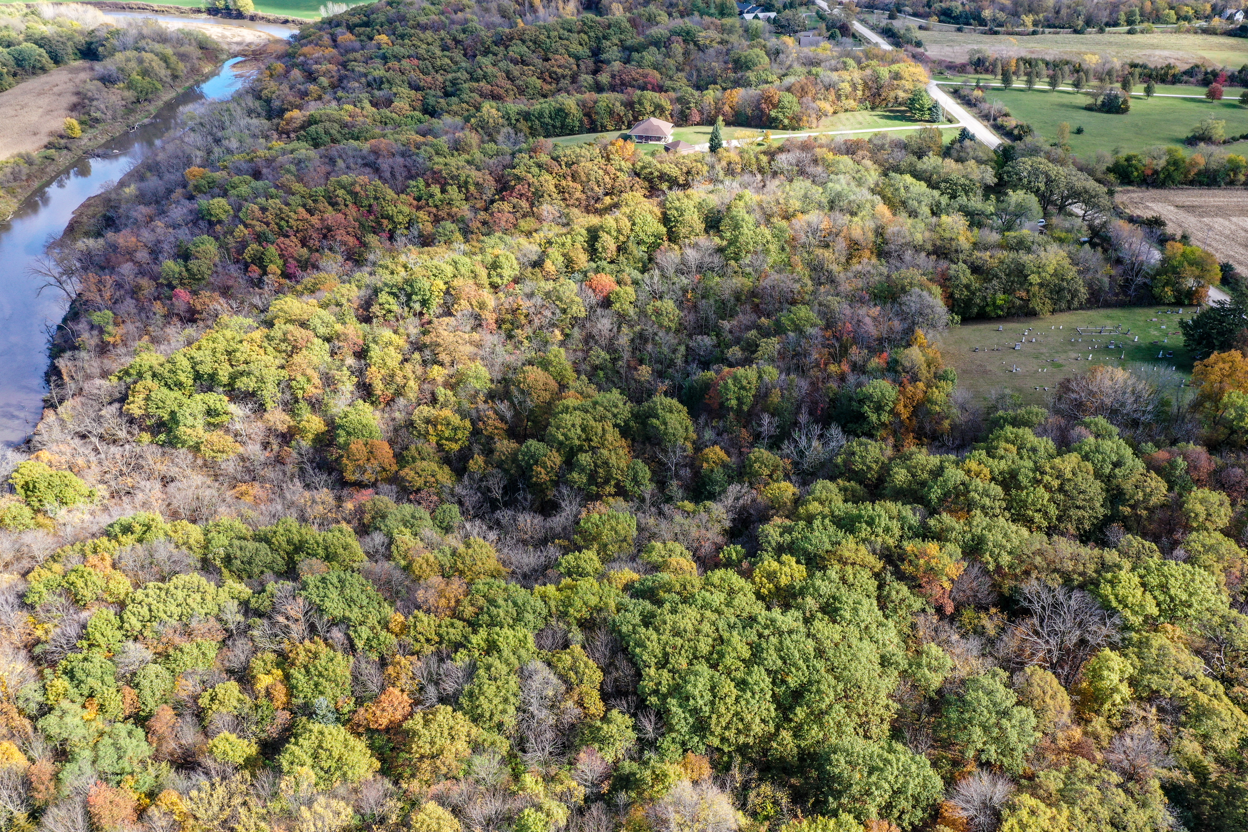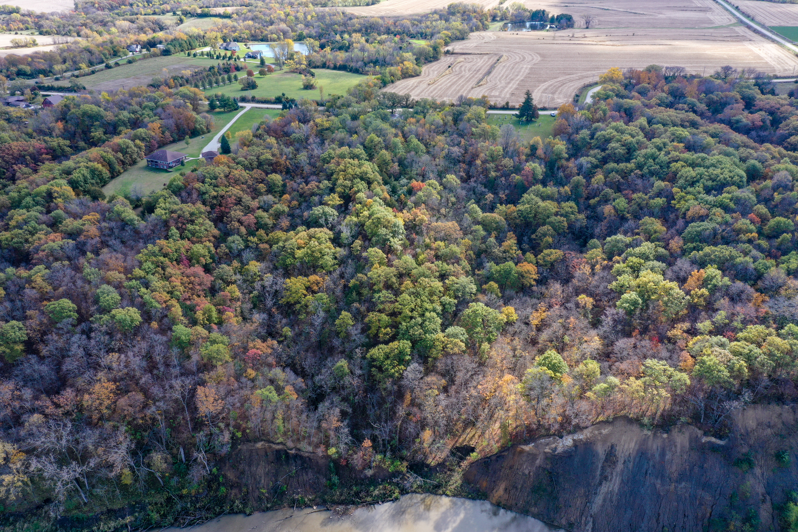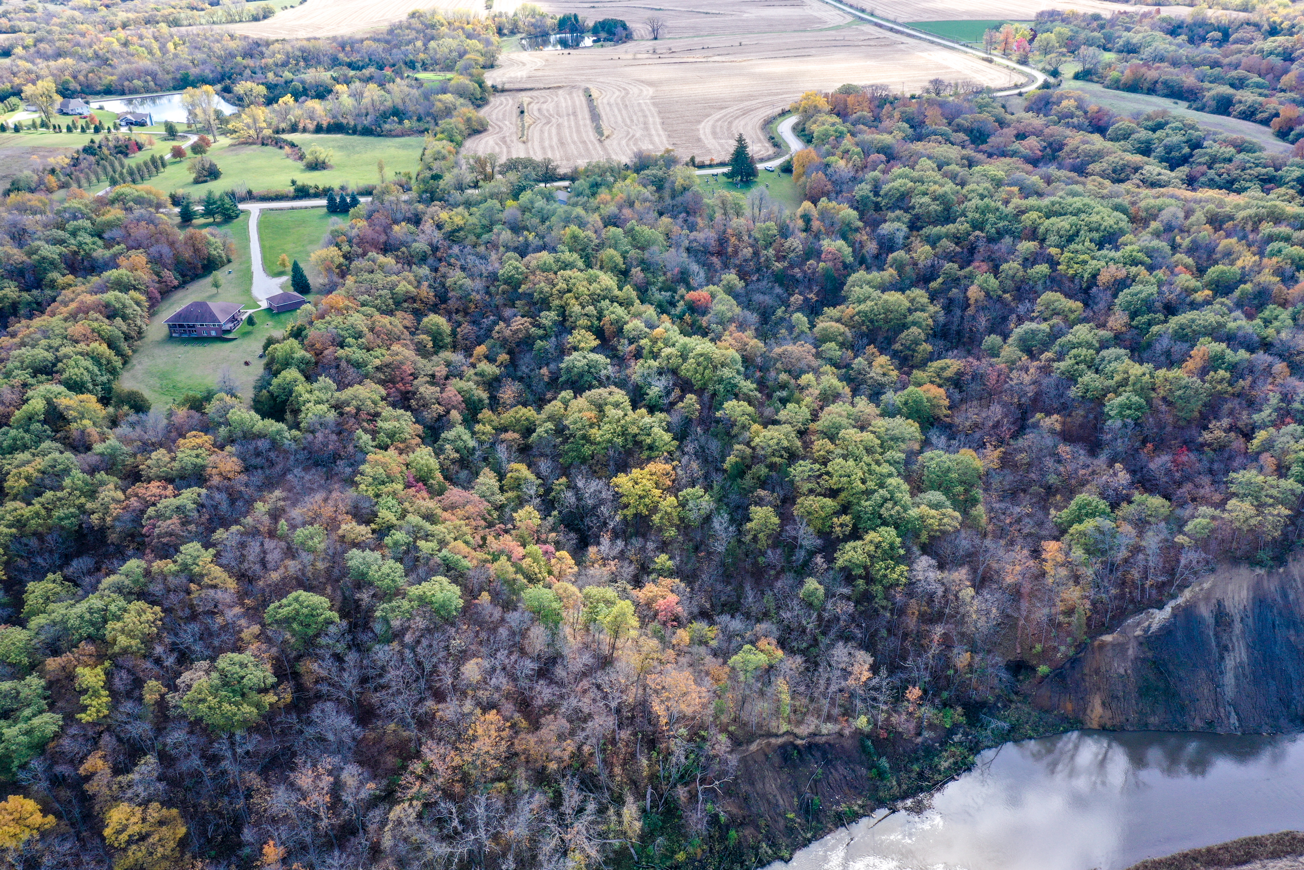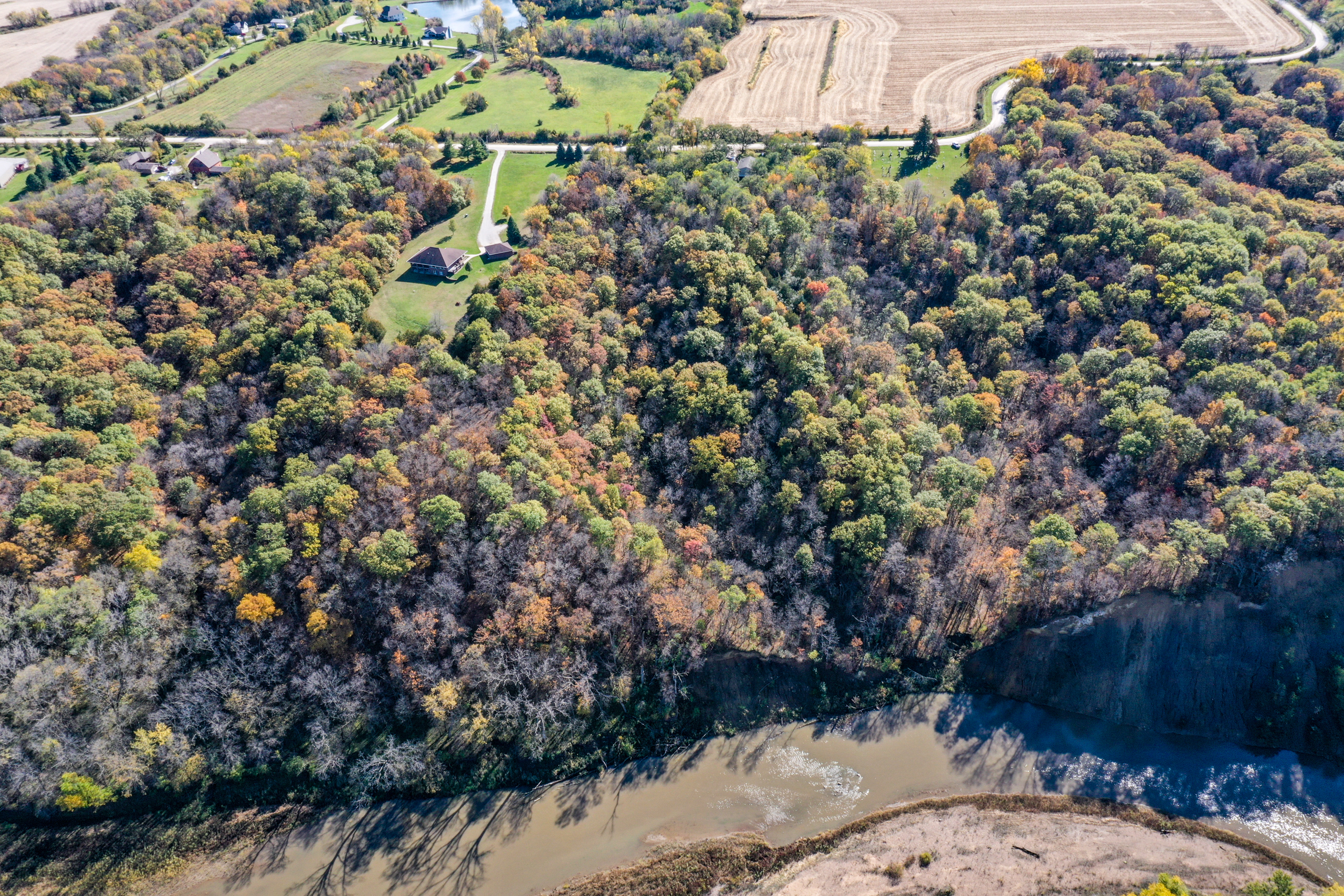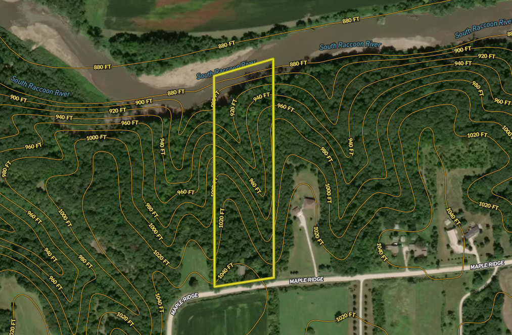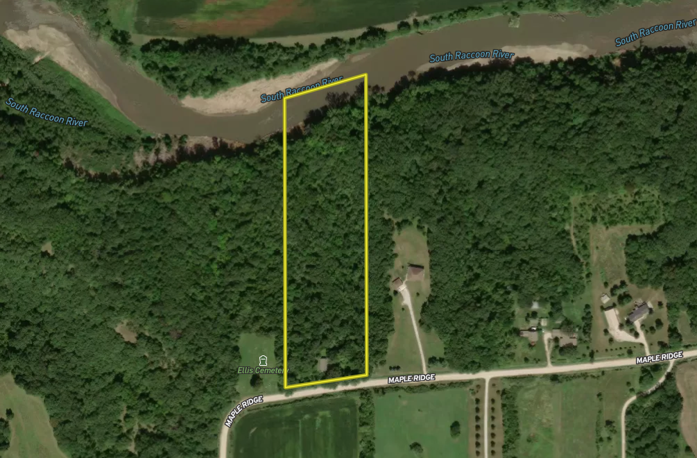 - The home sits on 8.5 +/- acres of timber with 350’ of South Raccoon River frontage