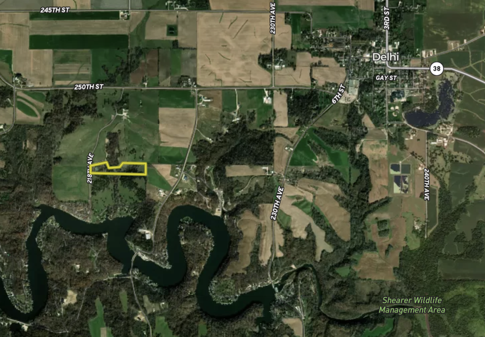 This might be your property if you’re looking for an acreage near Lake Delhi. Located only 1/4 mile from the lake on a hard surfaced road, these 14 acres m/l could be used in multiple ways. There is a flat building site on the front of the property that would make a great location for a house or cabin. The property has an 80x133 metal outbuilding currently used for storage but could also serve as a horse and livestock arena. With the proximity to the lake, this shop provides huge rental income potential for boats and other vehicles. There is a healthy deer population and a variety of trees that would make this tract serve as a great hunting property as well. Acreages this close to Lake Delhi that are buildable with income and hunting potential don’t come up often. There are deed restrictions with this property; contact the listing agent for more details or schedule a private showing.