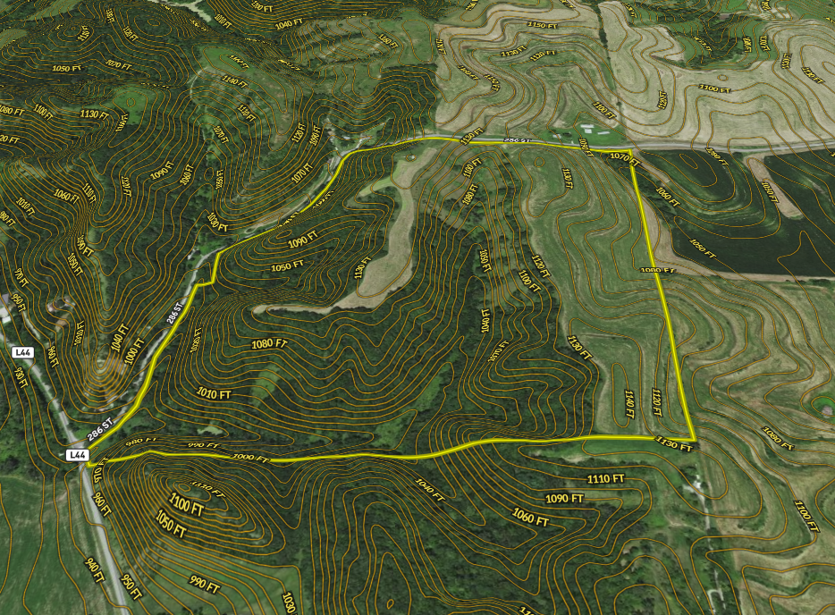 The location of this property is ideal. It has paved road access from Bluff Road on the southwest corner of the property and from 286th Street, a maintained gravel road that runs along this property's west and north sides. Access is paramount to one's ability to utilize all farm portions. It’s critical to maximize your hunting opportunities and all types of recreation on the farm. Three gated entrances provide easy access from the northeast, northwest, and southwest. An access road along the south property line also connects to an inner trail system that gives one tons of options for using the farm.