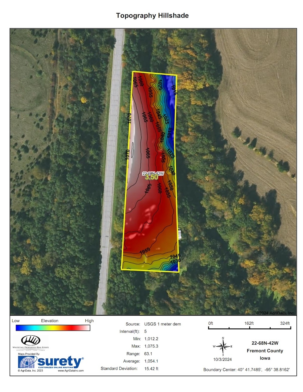 Outside the open area, there are roughly 2.9 acres of beautiful Loess Hills timber made up of Mature Oaks, Walnut, etc., with a mix of native grasses and forbs. This timber drops down to a creek drainage with good water for local wildlife. The timber connects to an extensive habitat, a great transition area for all kinds of wildlife. Deer and turkey are seen quite often utilizing the property. Even with the smaller acreage, hunting, and harvesting a deer or turkey on this property is very feasible. There’s currently one ladder stand located on the property. An opening from the power line would make a great area for a food plot that would only help the hunting.