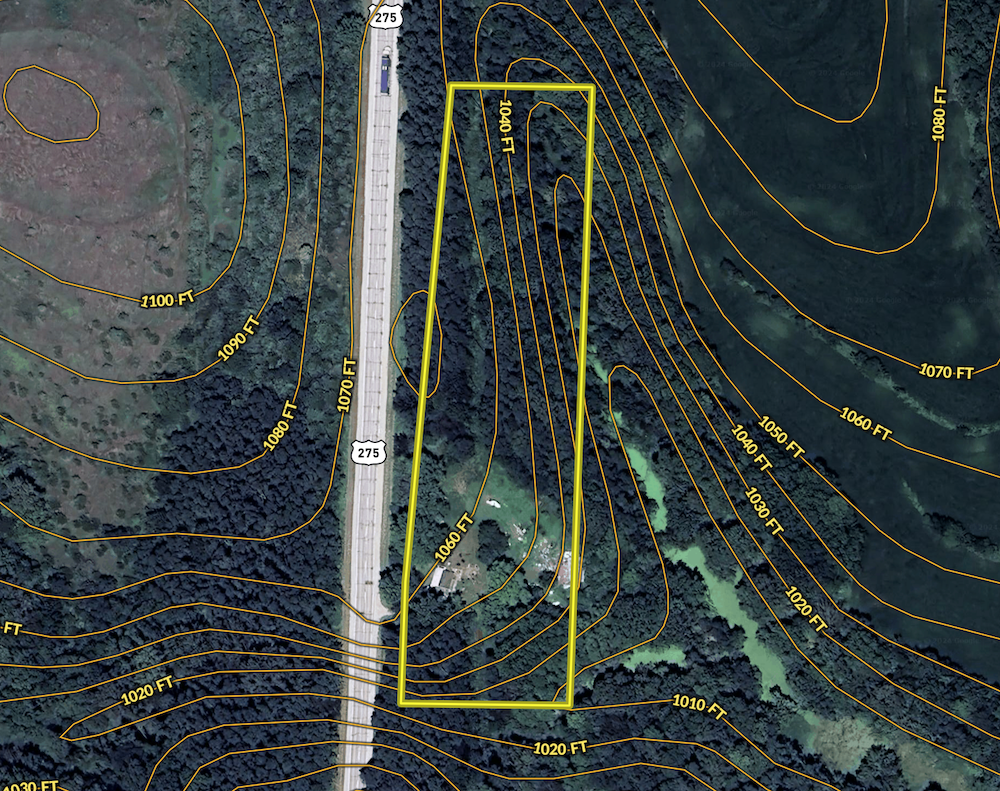 As you approach the property on US Highway 275, reliable pavement access is easy and simple. Even with Highway access, the thick timber right-of-way keeps this property secluded and mostly out of view from the roadway. The best of both worlds is quality access but secluded and private. The gated entrance greets you to the roughly .6 acres of open ground encompassing the cabin and camper. An 18’ x 30’ pole barn would provide storage for vehicles, ATVs, equipment, etc. This pole barn also has electricity running to it.