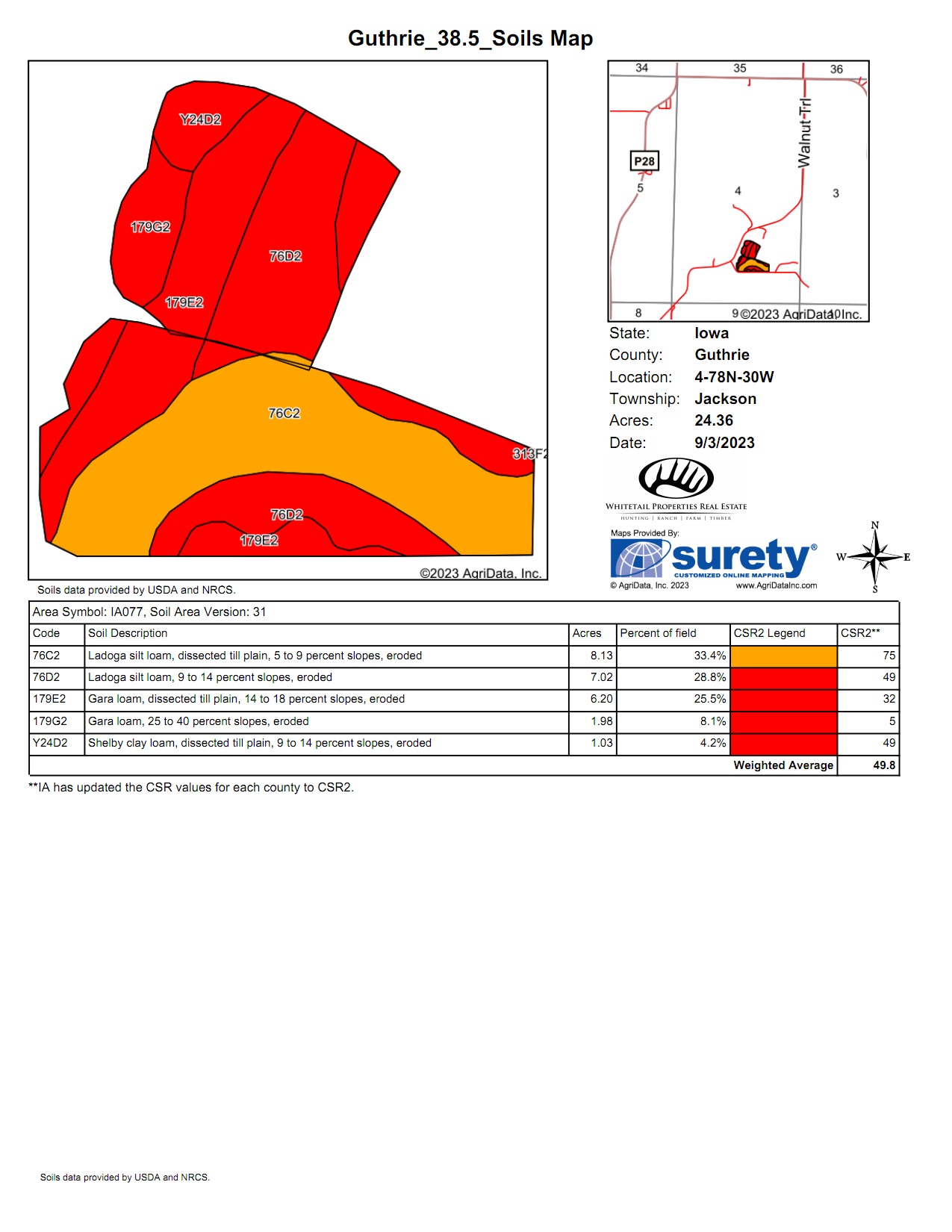 - 14.9 acres of CRP CP38E-25 paying $235.40 per acre or $3,522.00 annually