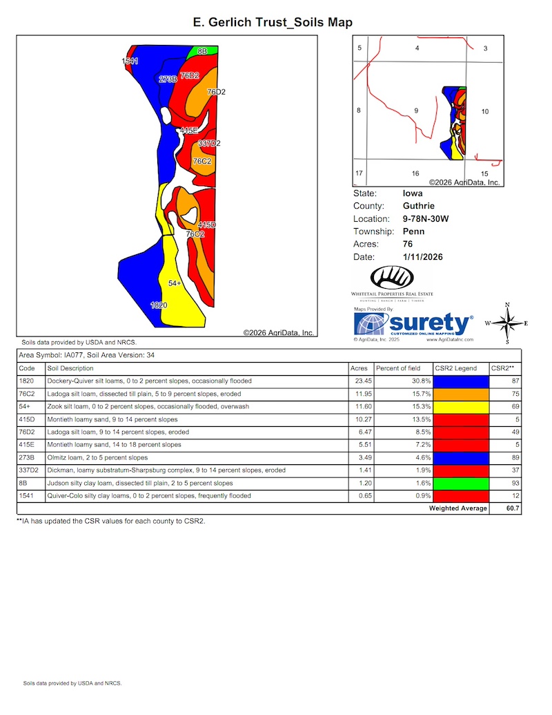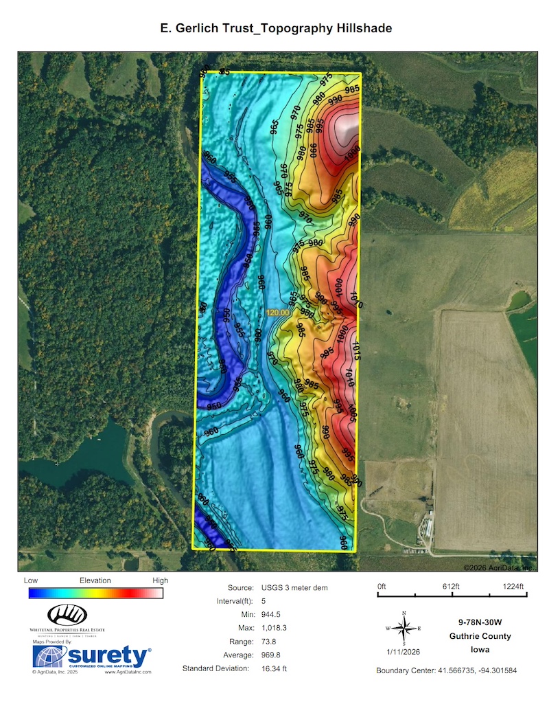 This Guthrie County, Iowa farm offers an extraordinary blend of consistent financial return, long-term land appreciation, and high-end recreational value—all anchored by ½ mile of South Raccoon River frontage and access. Located at the end of a dead-end road, this property delivers the kind of privacy and seclusion that serious land buyers, hunters, and investors actively seek but seldom find.