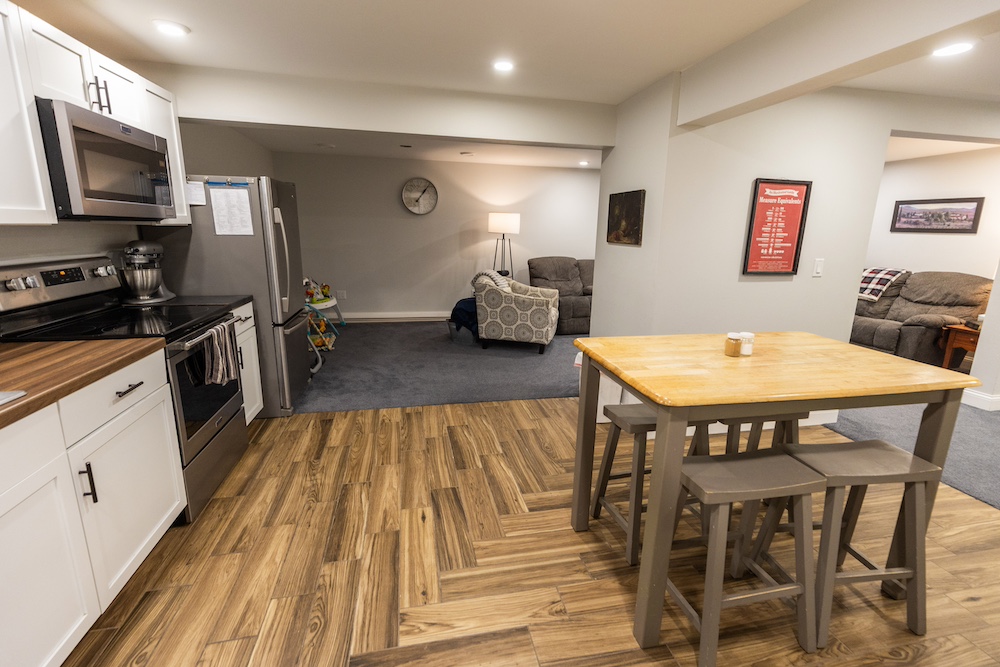 - Finished basement with kitchenette and flexible living space